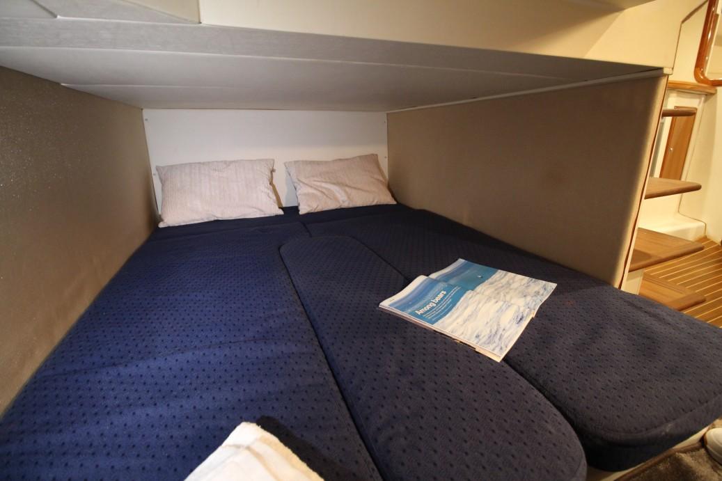 The guest cabin is situated under the cockpit over the entire beam. Just 4 steps down from her cockpit the comfortable guest cabin.