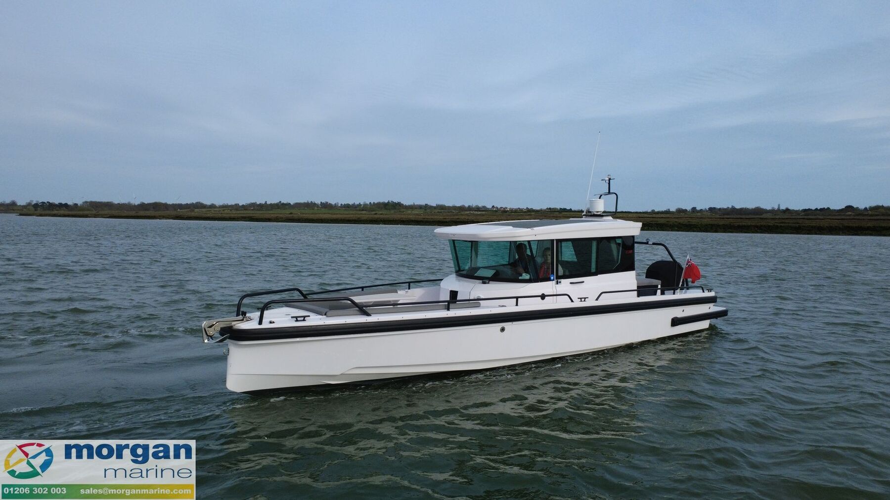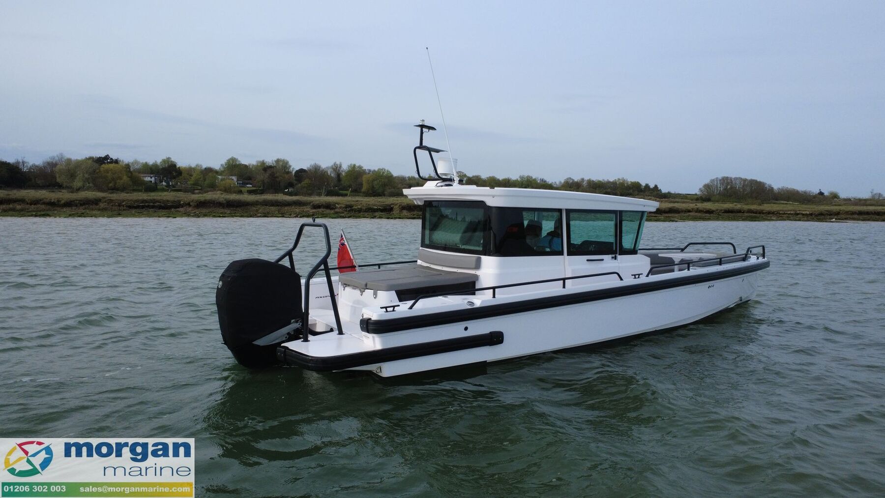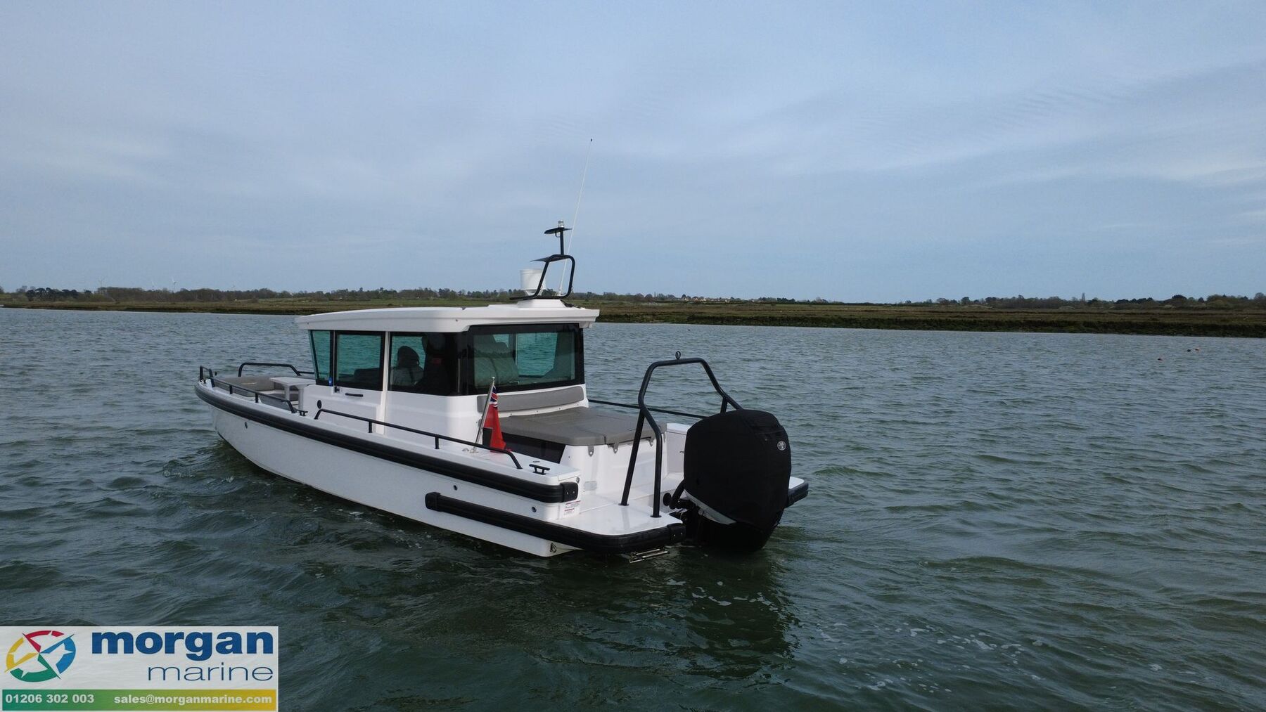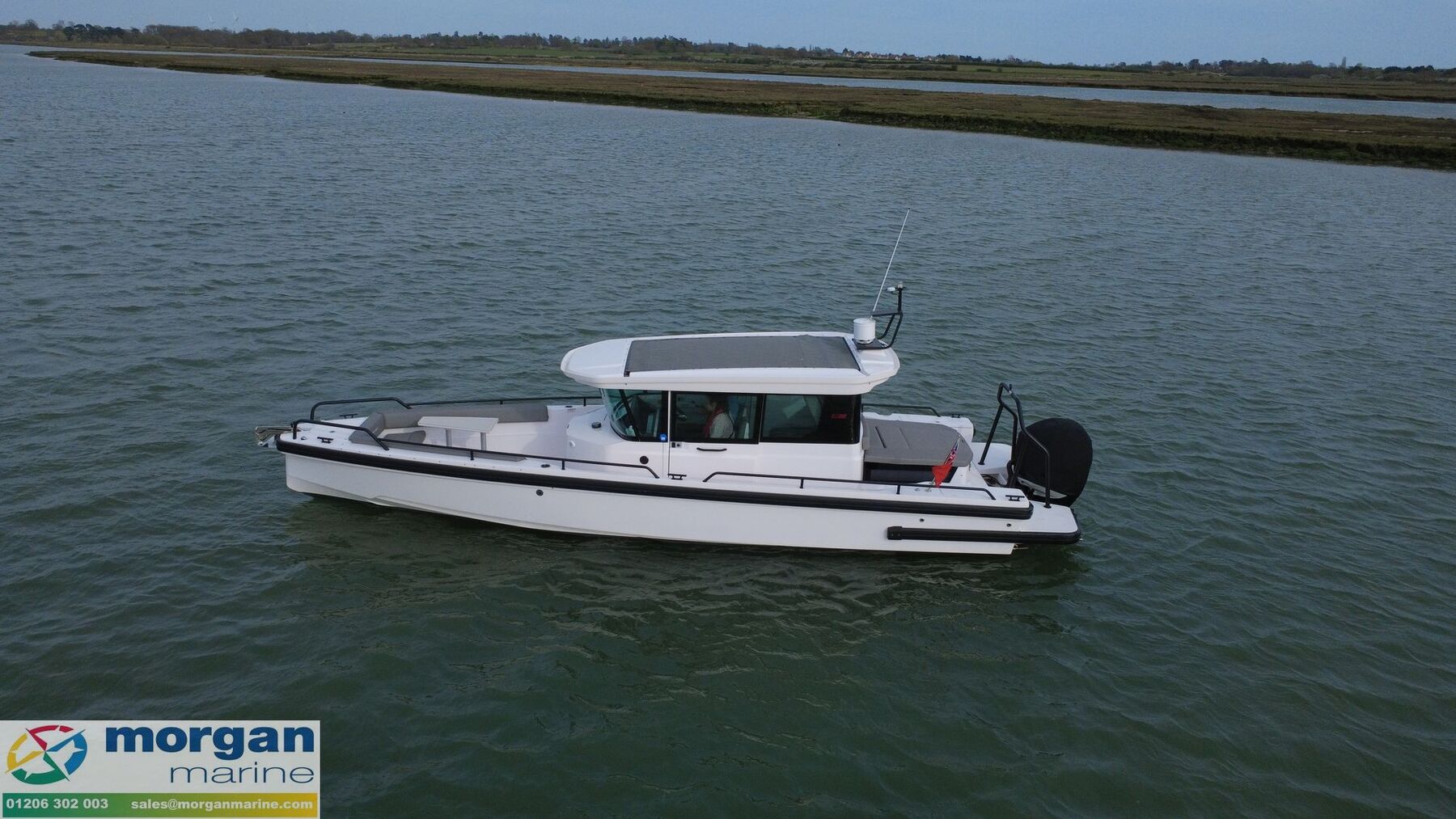 2021 Axopar 28 Cabin Brabus line is an excellent example of this highly sought after all weather boat, powered by a Mercury 350 XL Verado outboard delivering strong, reliable performance with impressive handling. This boat has been well maintained and remains in good condition, ready for its next owner. The boat is well specified for both comfort and practicality, featuring a Simrad 12-inch chart plotter with built-in AIS, Simrad VHF DSC radio, and a Fusion audio system with speakers for onboard entertainment. Manoeuvring is made easy with the addition of a bow thruster, while electric trim tabs ensure a smooth and controlled ride. A Webasto diesel air forced heating system keeps the cabin comfortable in all seasons. Access on board is excellent thanks to both port and starboard side doors, and the layout is designed for versatility and relaxation. The aft sunbed area comes with removable cushions, complemented by additional port and starboard side lockers for flexible seating and storage. Below, the cuddy offers a 2-berth setup, with the saloon also converting into an additional double berth, making overnight stays easy and comfortable. Further features include a forward console toilet compartment with manual toilet and sink, electric windlass for easy anchoring, a deck pop-up shower, and an A-frame with tow eye, adding to the boat’s functionality for leisure or light commercial use. This is a well rounded, practical, and stylish boat that is turnkey ready and ideal for UK boating conditions. Contact us today to arrange a viewing or for more information.