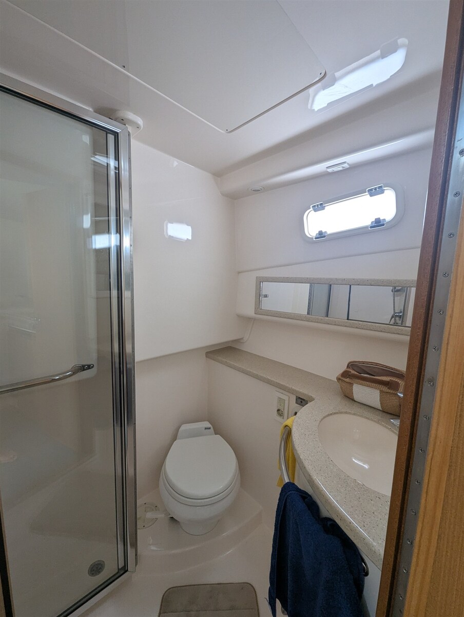 Alarme gaz, 2 Alarme moteur, Alarme de pompe de cale, Alternateur, Ouverture du compartiment moteur électrique, Eau sous pression, Douche de cockpit, Phares fixes arrière, Phare de poursuite, Flaps hydrauliques, Hard top, Extincteur(s) fixe(s), Lavabo dans le cockpit, Éclairage de courtoisie, Pompe de cale automatique, Porte latérale, Prise de quai, Connexion eau sous pression à quai, Onduleur, Guindeau électrique, Echelle de bain, table de cockpit, Corne.