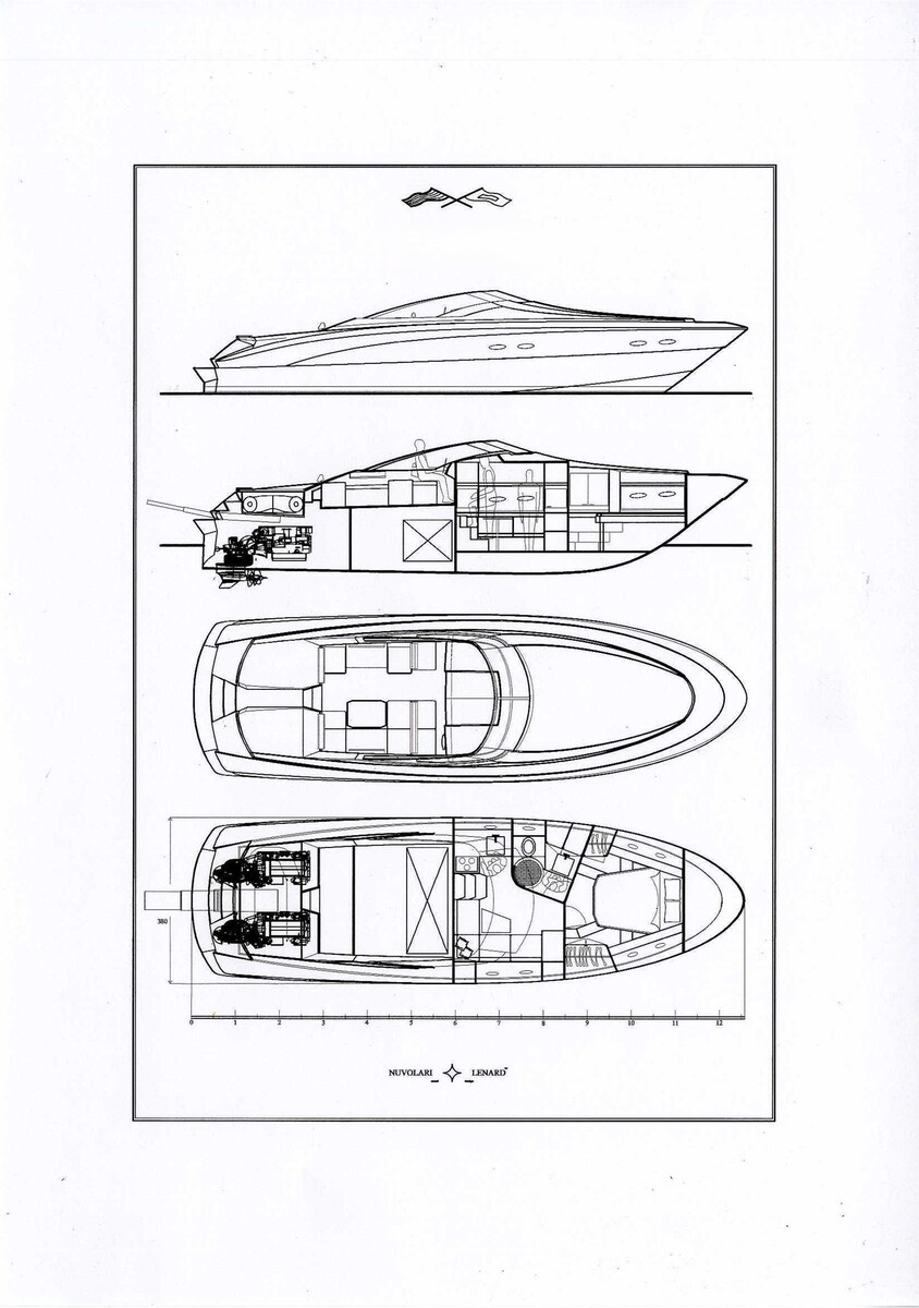 A concentrate of pure and advanced style as well as superior marine qualities. A boat with a sporty style, capable of brilliant performance but faithful to the shipyard's tradition, especially in terms of class and elegance. The Nuvolari & Lenard studio has developed a very advanced stylistic idea that manages to integrate the sophisticated cockpit protection awning without compromising the line or ergonomics of the driver's seat. The hull design was entrusted to Victory Design, a team with great experience in top powerboat competitions. The structures, engineering and industrialization were carried out by Studio Besozzi Selvetti. Spider rigorously preserves all the stylistic features of the range: long foredeck, large sunbathing areas, equipped outdoor living. The interiors, carefully finished thanks to the legendary craftsmanship of the shipyard's craftsmen, are characterized by a large saloon with kitchen, a real owner's suite in the bow, with bathroom and separate shower. Minna is a Sarnico Spider kept in perfect condition by the owner and his captain. A boat to see.