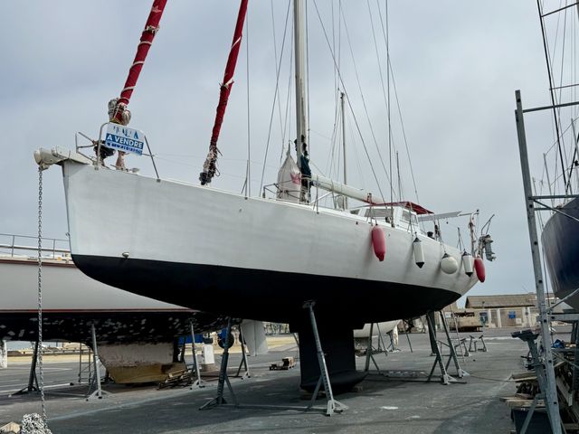 Construido en caoba estratificada en epoxi en los Chantiers de l'Estérel sobre plano BOUVET/PETIT, este sloop de 17,90 m es la obra de un carpintero naval apasionado. ¿Su barco gemelo? El legendario Écureuil d'Aquitaine, ganador del Vendée Globe con Titouan Lamazou — un pedigrí que lo dice todo.