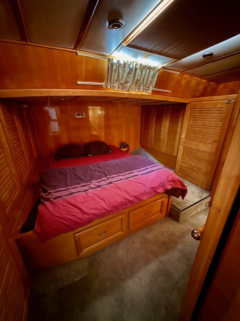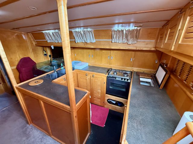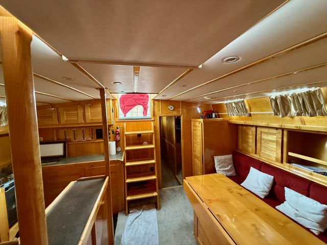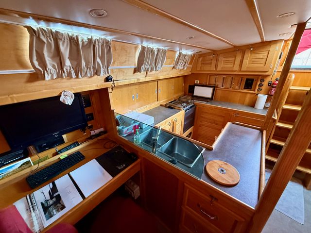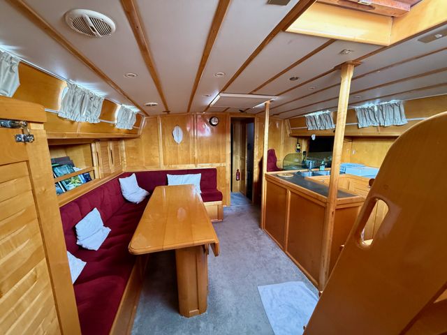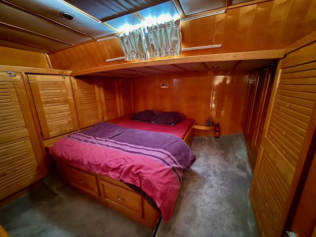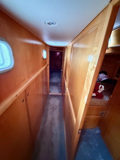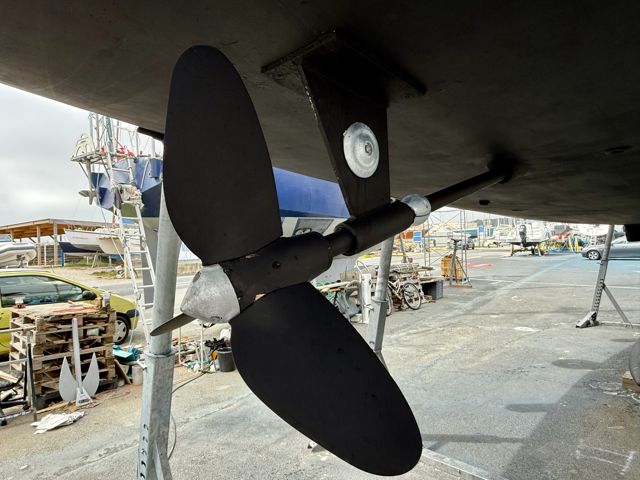 Motorisation Moteur CUMMINS 4BT3 150 CV diesel entièrement reconditionné, en ligne d'arbre avec hélice Maxprop 650 mm bronze 3 pales. Trois réservoirs de 1 300 L de gasoil.