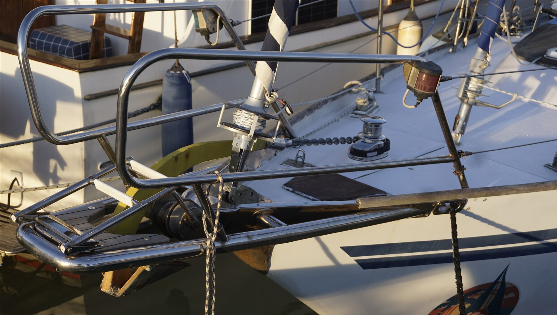Wechselstromgenerator (new), Anker (70 kg + 120 m 12mm chain), Druckwasserpumpe, Batterien (2024/25), Cockpitdusche, Bugstrahlruder (rev. 2024), Windgenerator, Kran für Außenborder, Außenbordmotor für Beiboot (TOHATSU 9.9), Solarpanel, Fender, Gangway, Plattform, manuelle Bilgepumpe, Landanschluß, elektrische Ankerwinde, Badeleiter (+ bow ladder), Cockpittisch, Beiboot (RIB), Winschen, Winschen elektrish (2 x), Windex.