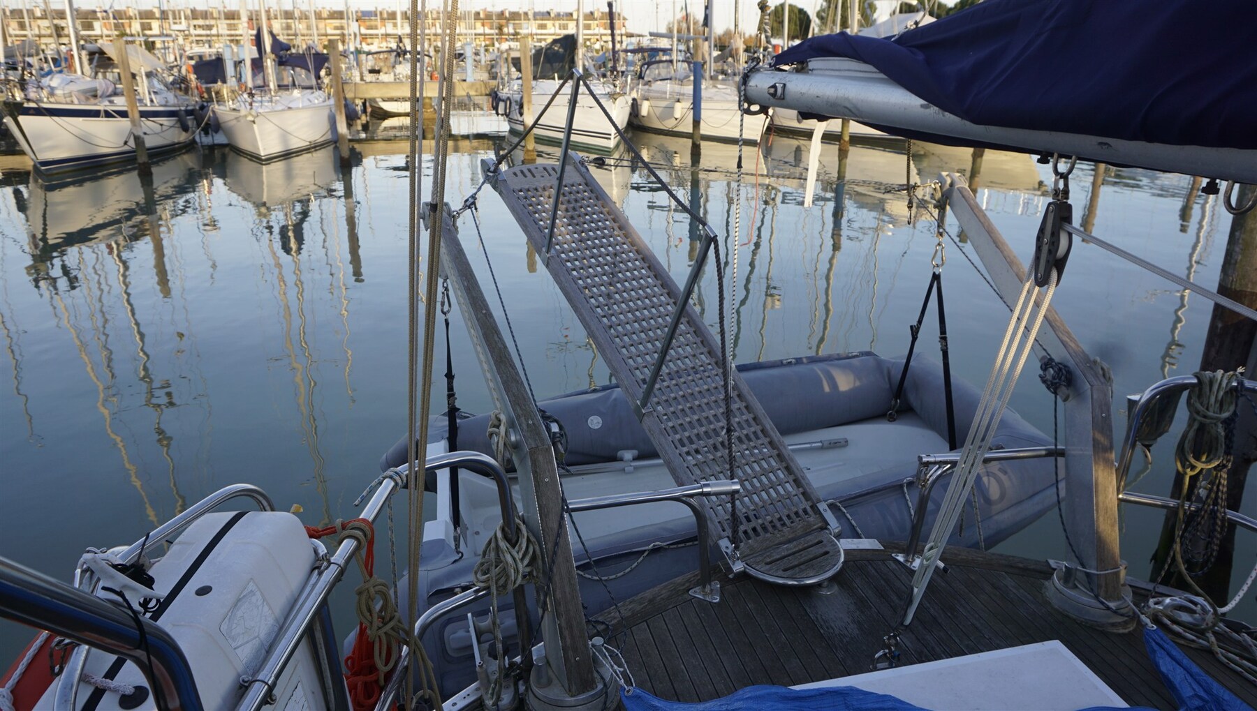 Alternator (new), Anchor (70 kg + 120 m 12mm chain), Water pressure pump, Batteries (2024/25), Deck Shower, Bow Thruster (rev. 2024), Wind Generator, Outboard Crane, Outboard engine for tender (TOHATSU 9.9), Solar panels, Fenders, Gangway, Platform, Manual Bilge Pump, Shorepower connector, Electric Windlass, swimming ladder (+ bow ladder), cockpit table, Tender (RIB), Winch, Winch Electric (2 x), Windex.
