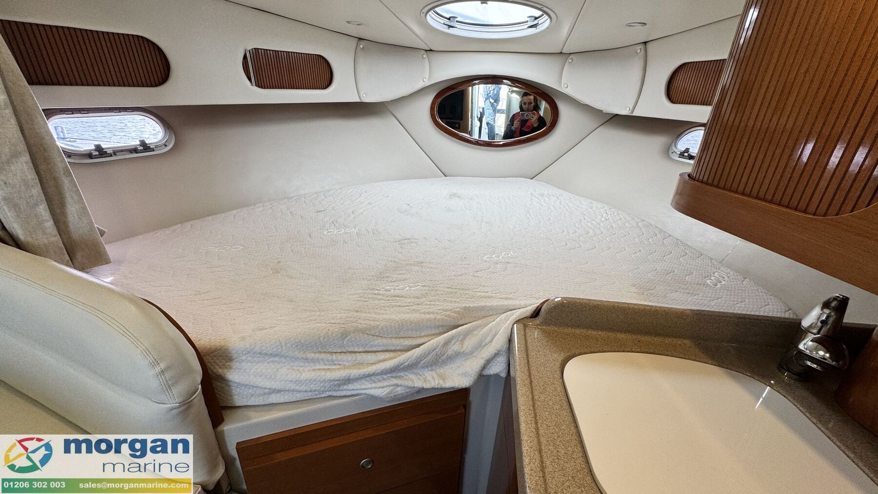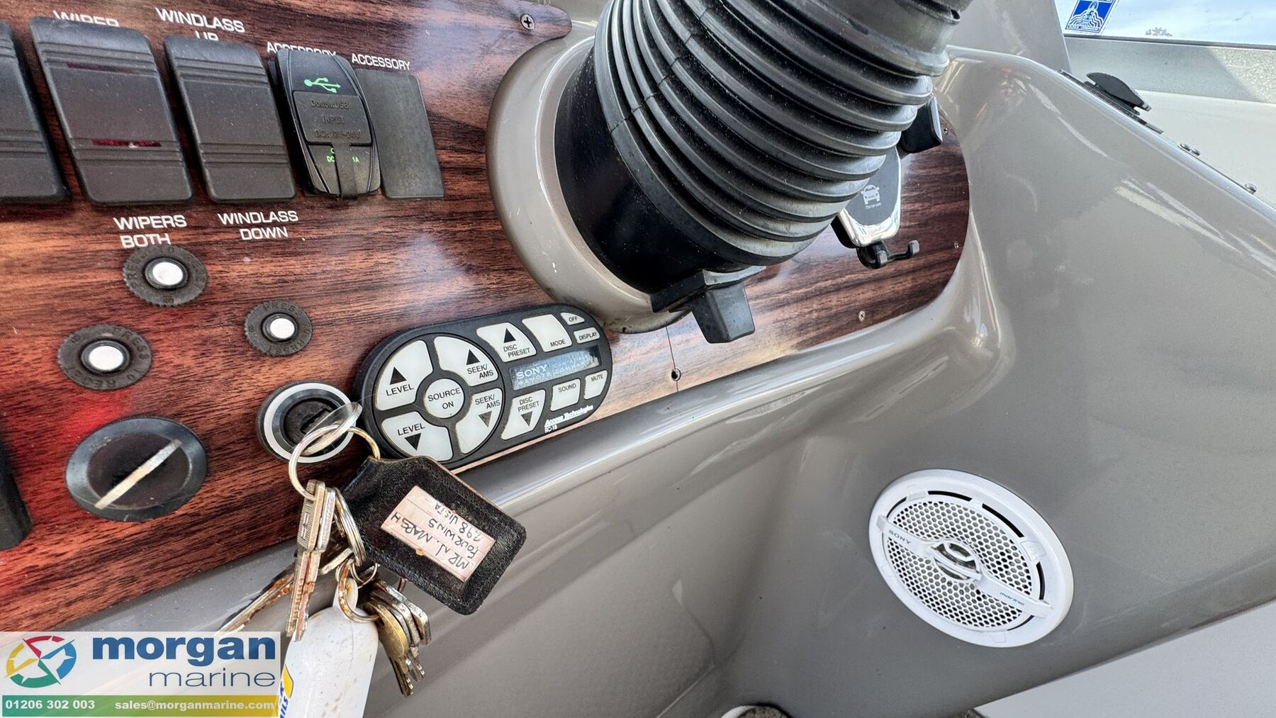 Electronics: Sony sound system with speakers. USB socket. Switch panel. Navigation lights. Anchor light. Engine gauges. Compass. Manual and automatic bilge pump. Shore power with lead. Electric wiper blades. Horn. Cockpit lights. Interior lights. Isolator switches.