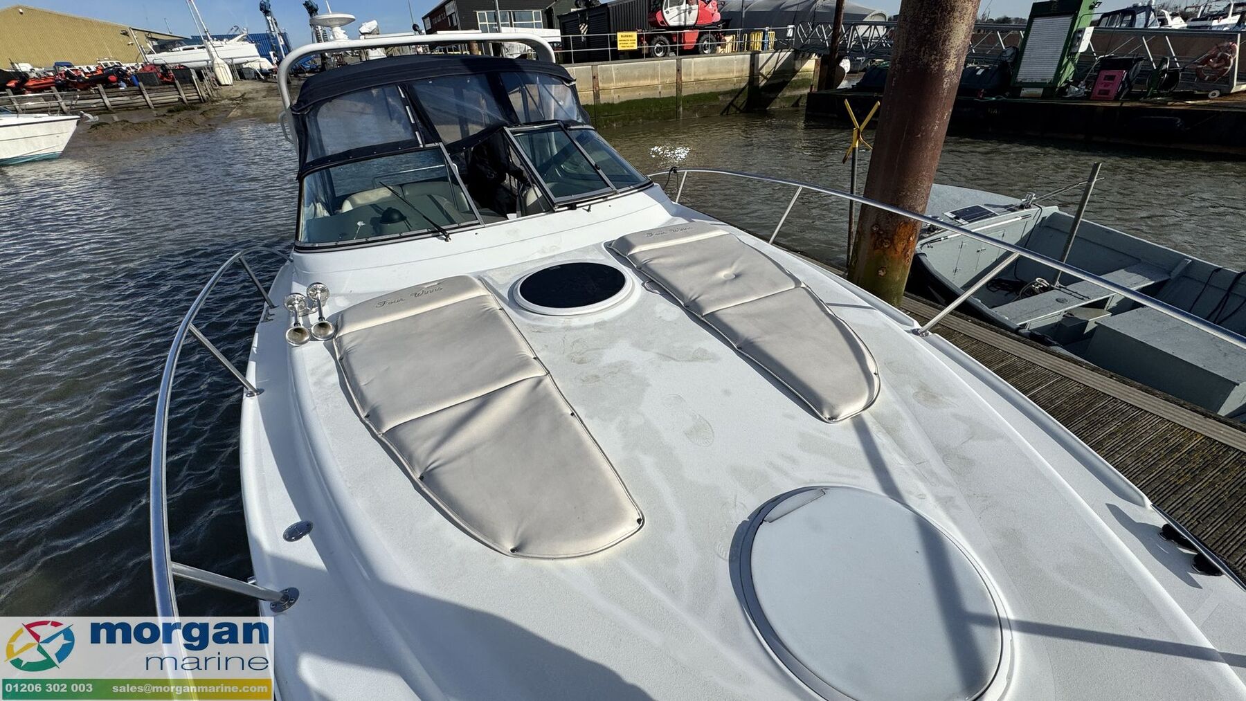Just arrived at Morgan Marine, this 2001 Four Winns 298 Vista is powered by twin Volvo Penta 4.3 V6 250hp inboard petrol engines with reliable stern drives. She has been lovingly cared for by her current owner and has been used exclusively on freshwater since new, helping to preserve her excellent overall condition. This model boasts an innovative lounge, a uniquely sculpted aft cockpit, and a built-in entertainment centre, making her ideal for relaxing or socialising on the water. The cockpit canopy was replaced three years ago, and the upholstery to both the upper and lower decks has been recently renewed, giving the boat a fresh and well-presented appearance throughout. Inside, the cabin offers comfortable and gracious accommodation with two double berths and a dinette that converts into a large single berth. A spacious side galley and generous cockpit seating make her perfectly suited for weekend cruising or longer stays aboard. With a good service history and an impressive specification, this is a fantastic opportunity to own a well-maintained and versatile cruiser. Early viewing is highly recommended!
