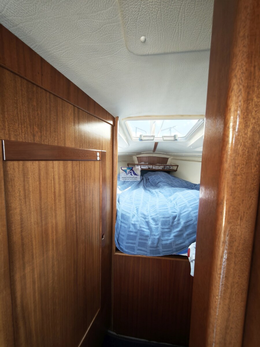 Sie ist komfortabel, komplett mit geöltem Teakholz ausgestattet, verfügt über beste Segeleigenschaften und war die erste Serienyacht mit einer Selbstwendefock.