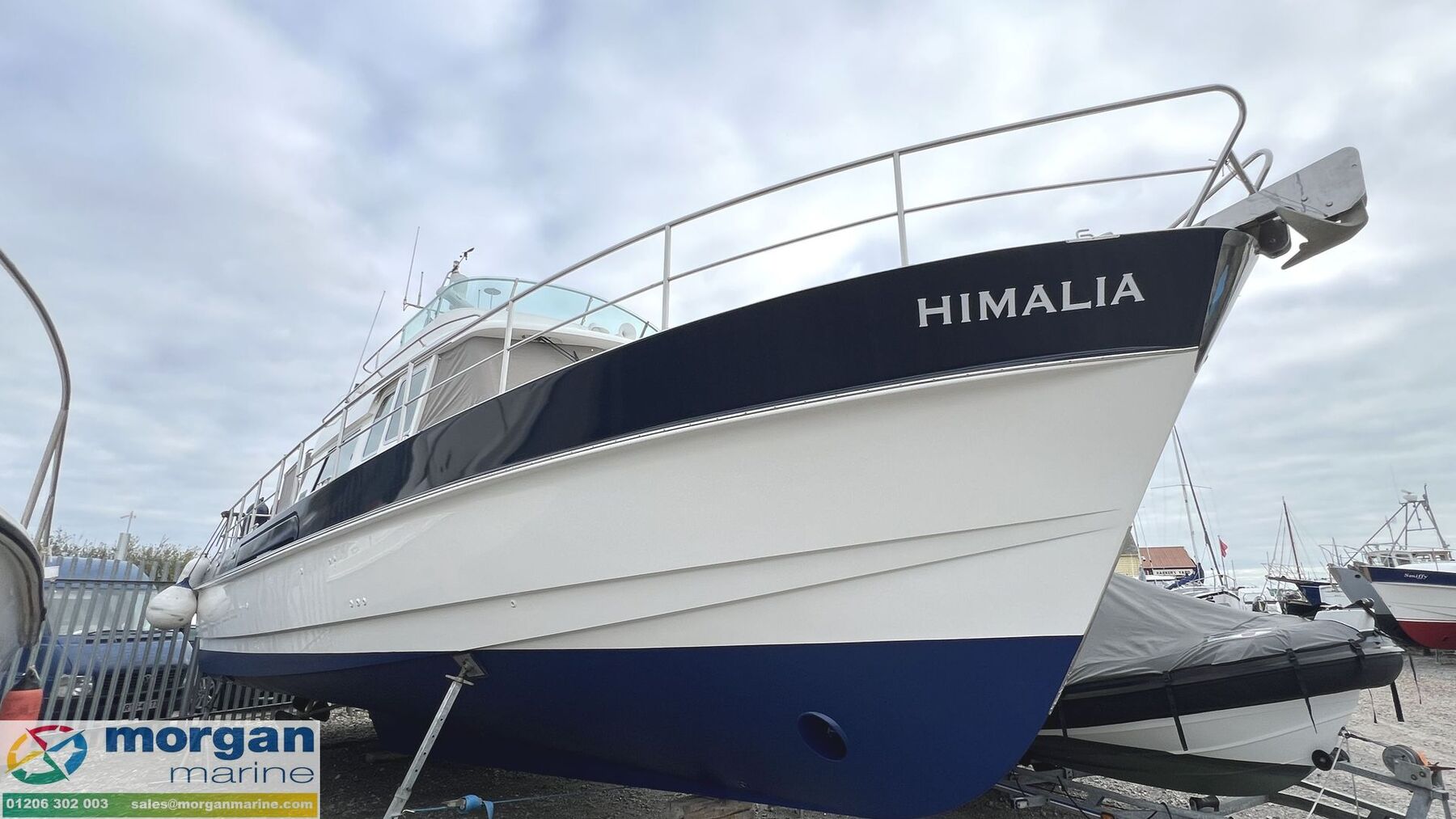 Just arrived at Morgan Marine, the 2003 Hardy Commodore 42 Flybridge is an exceptional example of a versatile and capable offshore cruiser - with only two owners from new! Powered by twin Yanmar 420hp 6LY2M STE inboard diesel engines on shaft drives, with the added benefit of a bow thruster, she offers both power and precision on the water. Presented in fantastic condition with a huge amount of upgrades and service history, Himalia combines striking looks with outstanding seakeeping ability, making her a true all-rounder. Step on board and you’ll find accommodation for five across three cabins, a spacious saloon with panoramic 360-degree views, and a fully equipped galley designed for comfort at sea. She comes loaded with premium features, including Raymarine autopilot, four modern Raymarine chart plotters, Raymarine VHFs, a fully serviceable generator, diesel heating, an electric windlass with helm and flybridge controls, a rear digital camera, recently re-antifouled in October 2025 and much more. With a cruising speed of 15–20 knots and the ability to reach up to 25 knots, this boat delivers performance to match her style, cutting effortlessly through the waves. Backed by a solid service history and complete title paperwork, Himalia is a rare opportunity that won’t stay on the market for long. Early viewing is strongly recommended - Contact Morgan Marine today to arrange yours.