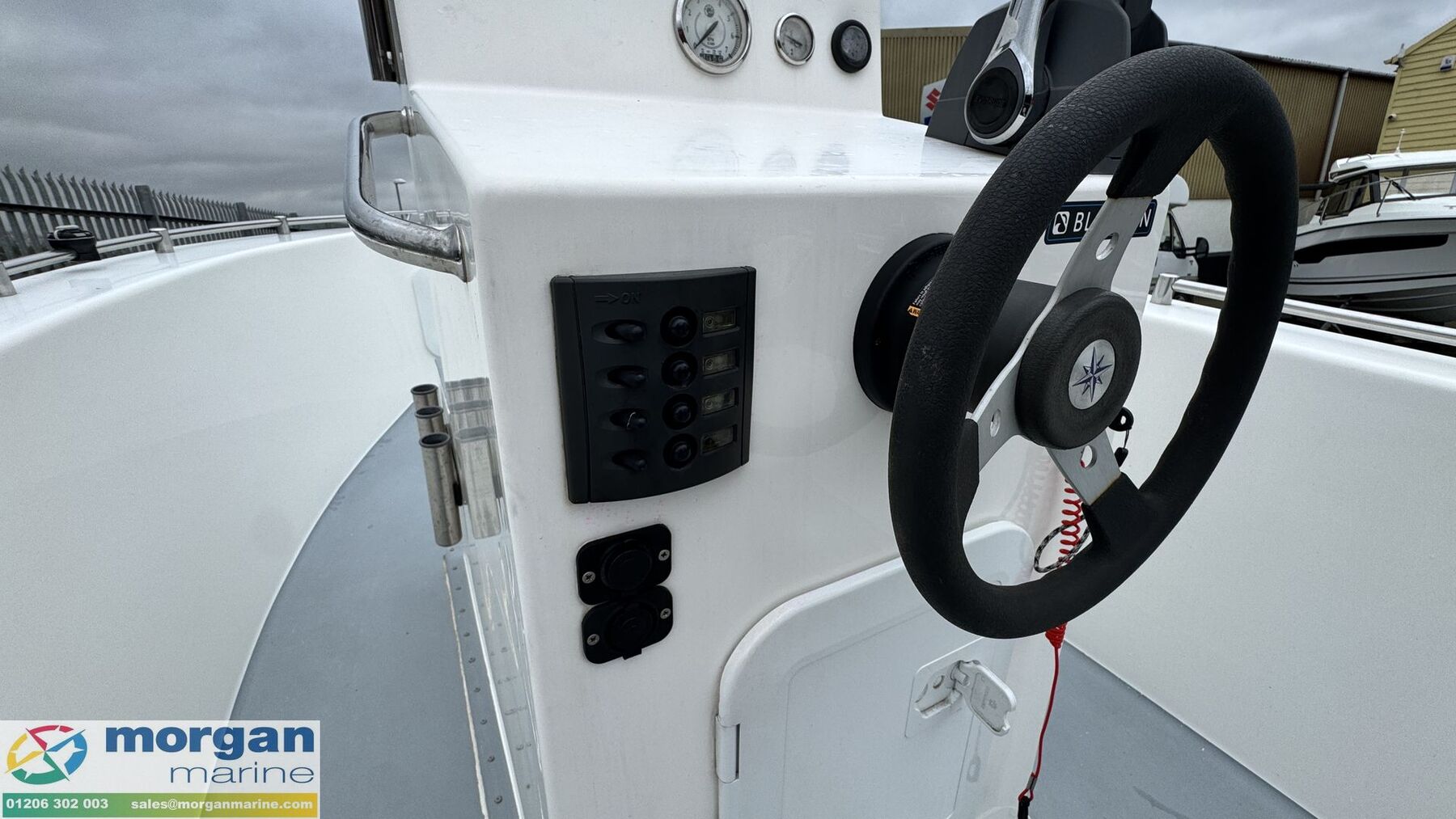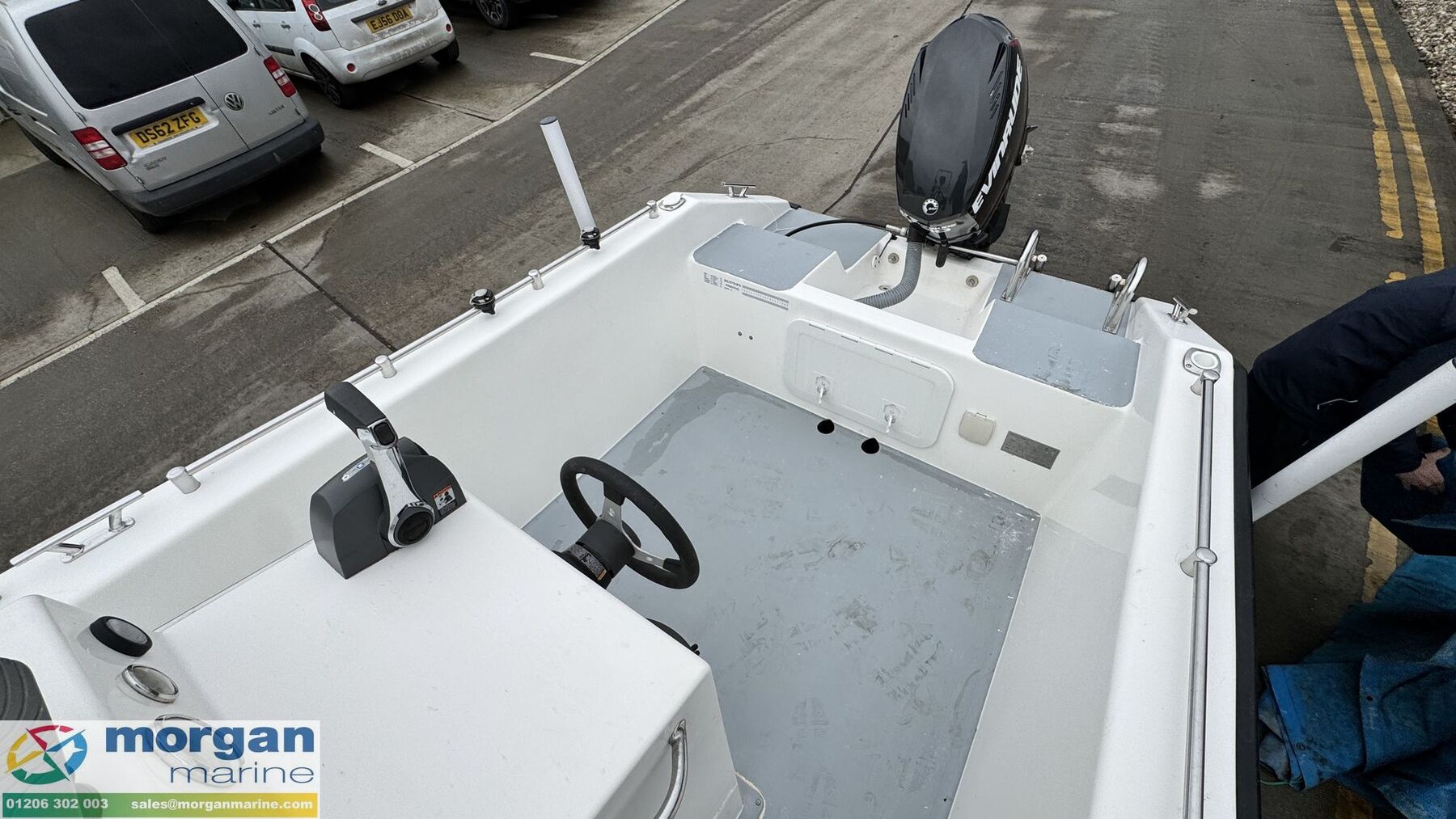 Electronics: Raymarine Dragonfly 7 chart plotter and fish finder. USB sockets. RPM, trim and fuel gauge. Battery isolator switch. Manual and electric bilge pump.