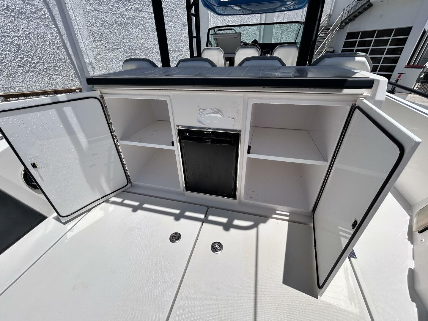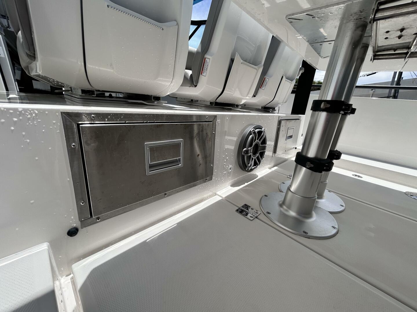 • Audio upgrade with one subwoofer on aft deck and 5ch amplifier and Fusion audio controls at helm and in cabin