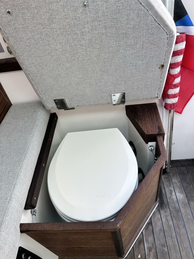 • Toilet with electric flush with septic tank 70l and deck/hull outlets