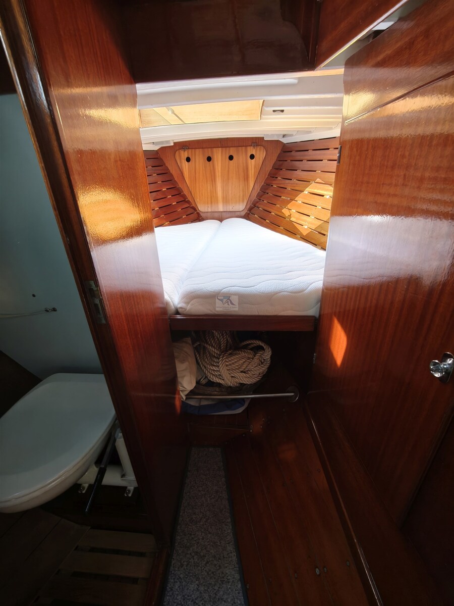 2 Ancla (5m Kette, 8mm), Bomba de agua dulce, 4 Baterías (400 Ah), Pasillos laterales en teca, Cargador de batería (50A LEB), 2 Bomba de achique automática, Bañera en teca, Toma de 220V para el puerto, Molinete eléctrico, Strand aparejo, mesa de bañera, Bocina, 9 Winch (2 x 52 ST, 2 x 46 ST Andersen, 4 Schotwinschen), Windex.