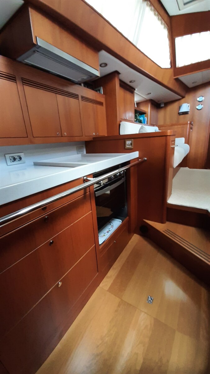 Engine Alarm, Anchor (ULTRA Inox), Water pressure pump, Batteries (2026), Battery charger (MASTERVOLT Kombi 24V/4000W/60A), Deck Shower (h/c), Bow Thruster (SLEIPNER 24V, 10 hp, 25 cm), Crane (SIMPSON 100), Outboard Crane (NOVALIFT), Courtesy Lights, Gangway (BESENZONI 2,35 m hydr), Automatic Bilge Pump, Manual Bilge Pump, Teak deck (2025 new), Shorepower connector, Electric Windlass (+ Capstan, 100 m ss chain), Strand rigging (2025 new), swimming ladder, Outboard Engine Support Bracket (in stern locker), cockpit table (Teak, with extension), Tender (WILLIAMS Jet 60 hp 10h), guard rails with gates, Horn, Winch Electric (2 x LEWMAR 48 + 2 x LEWMAR 64), Windex.
