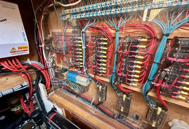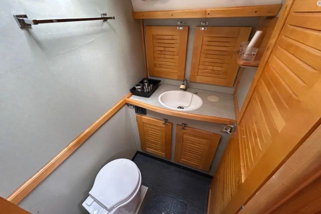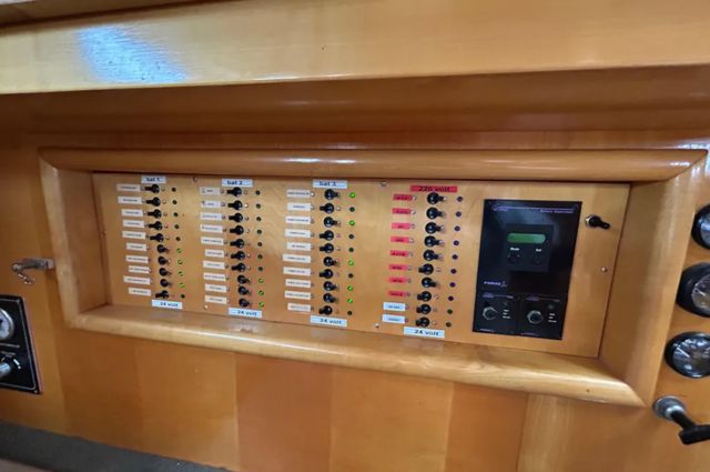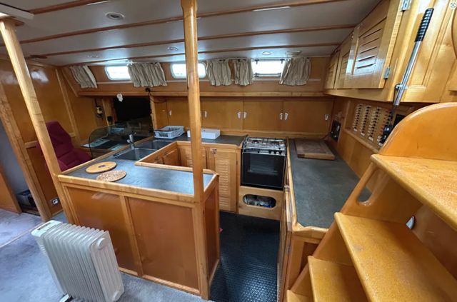 Motorisation Moteur CUMMINS 4BT3 150 CV diesel entièrement reconditionné, en ligne d'arbre avec hélice Maxprop 650 mm bronze 3 pales. Trois réservoirs de 1 300 L de gasoil.