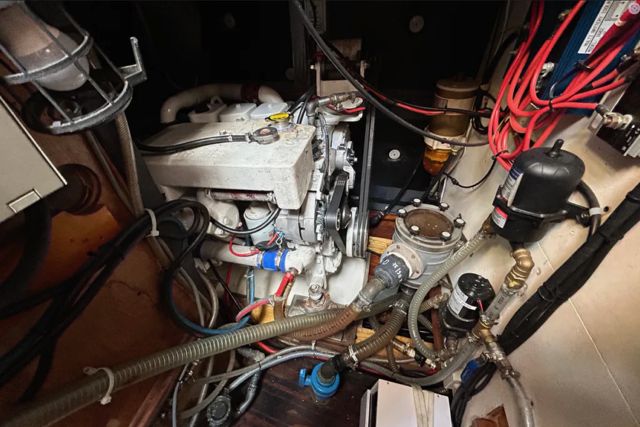 Engine CUMMINS 4BT3 150 HP diesel, fully reconditioned, direct shaft drive with Maxprop 650 mm bronze 3-blade propeller. Three fuel tanks of 1,300 L each.