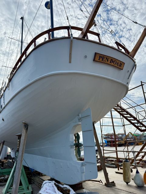 Originalmente llamado Buyuk Amiral, Pen Doar fue diseñado en 1988 por su primer armador para navegar hacia el Mar Rojo y el Océano Índico. Es un barco cómodo y muy marinero, capaz de soportar vientos de hasta 50 nudos — lo hemos comprobado en cinco ocasiones. Entre 2018 y 2023, se llevó a cabo un refit integral para hacerlo autónomo y listo para travesías transoceánicas.
