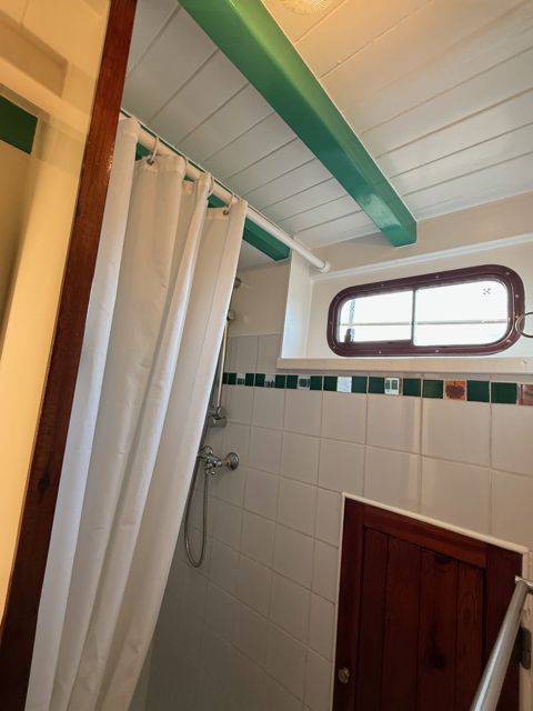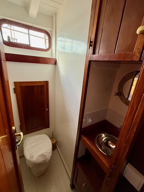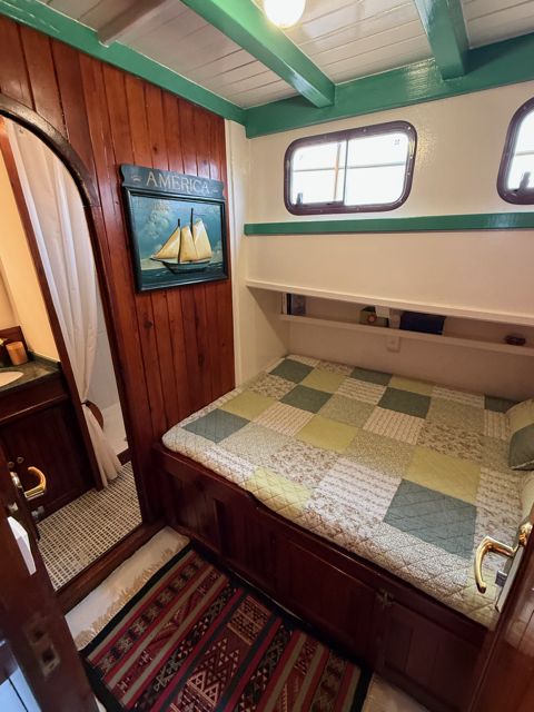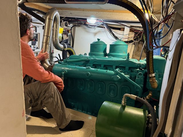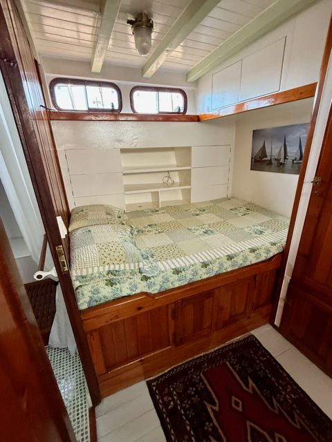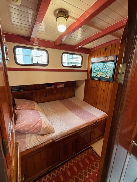 El motor, un GM Detroit diésel de 6 cilindros y 2 tiempos — robusto y económico — ha sido completamente reconstruido. Es una verdadera “casa flotante” equipada para la navegación de altura.