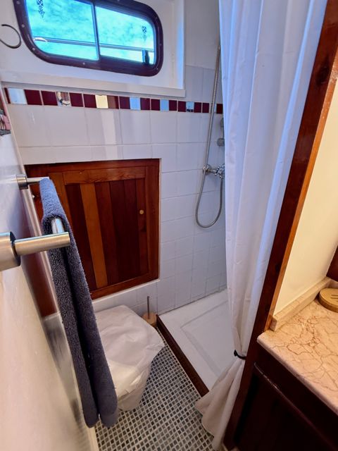 Le moteur, un GM Detroit 6 cylindre 2 temps diesel, très solide et économique, a été totalement reconstruit à neuf. C'est une "maison" sur l'eau avec tous les équipements de navigation hauturière.