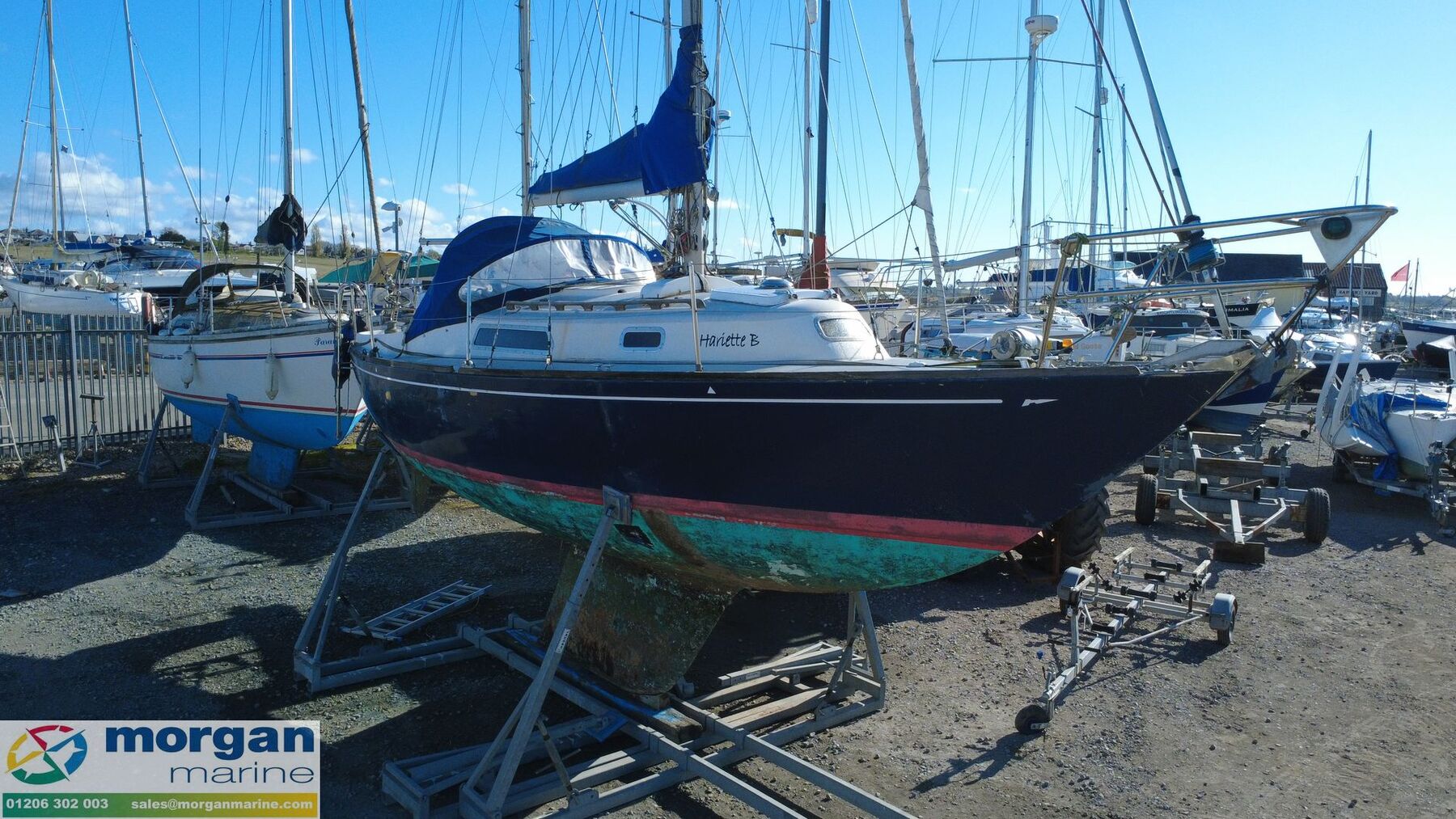 She is well equipped with electronics including a Standard Horizon chart plotter, Garmin 152 GPS with fish finder, and a Clipper GPS repeater in the cockpit, alongside a Fusion audio system with speakers for onboard entertainment. Powered by a Volvo Penta 2002 series 18hp twin-cylinder diesel engine, believed to have been installed in the mid-1980s, which offers dependable auxiliary power to complement her capable sailing performance. With her classic lines, proven design, and comfortable accommodation, this boat presents an excellent opportunity to own a characterful and capable yacht, equally suited to coastal cruising or weekend adventures afloat.