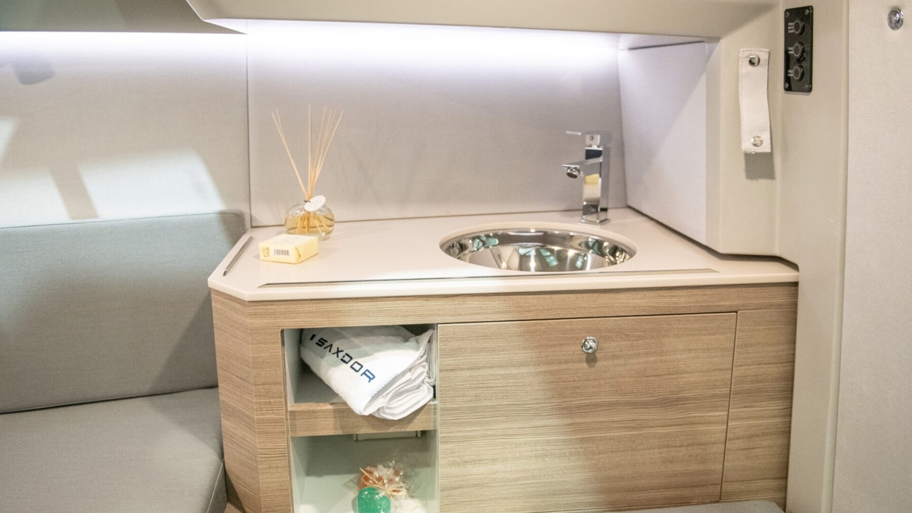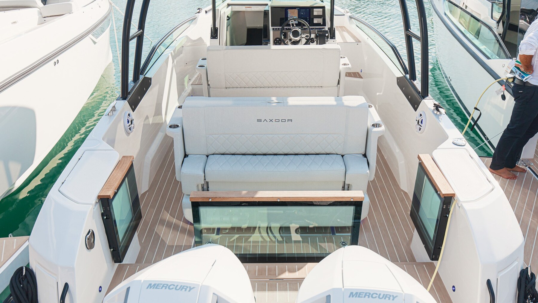 The Saxdor 270 GTO has been designed according to the Saxdor philosophy, with a lightweight double-redan hull that behaves softly on the water. This model offers the performance, speed and fuel efficiency that previous versions have been known for. The inverted bow with a very deep V-shaped entry reduces the impact with the waves, improves the overall stability of the boat and makes driving more enjoyable. The light and robust construction, made with the vacuum infusion technique, allows you to have a boat that can be easily trailered and simple to launch or recover. The 270 GTO is the ideal choice for those who love the sun: thanks to the two sundecks – one at the bow and one at the stern – you will have ample space to relax. The rear sundeck, if necessary, can be reconfigured into a comfortable dinette. Contact us for more details