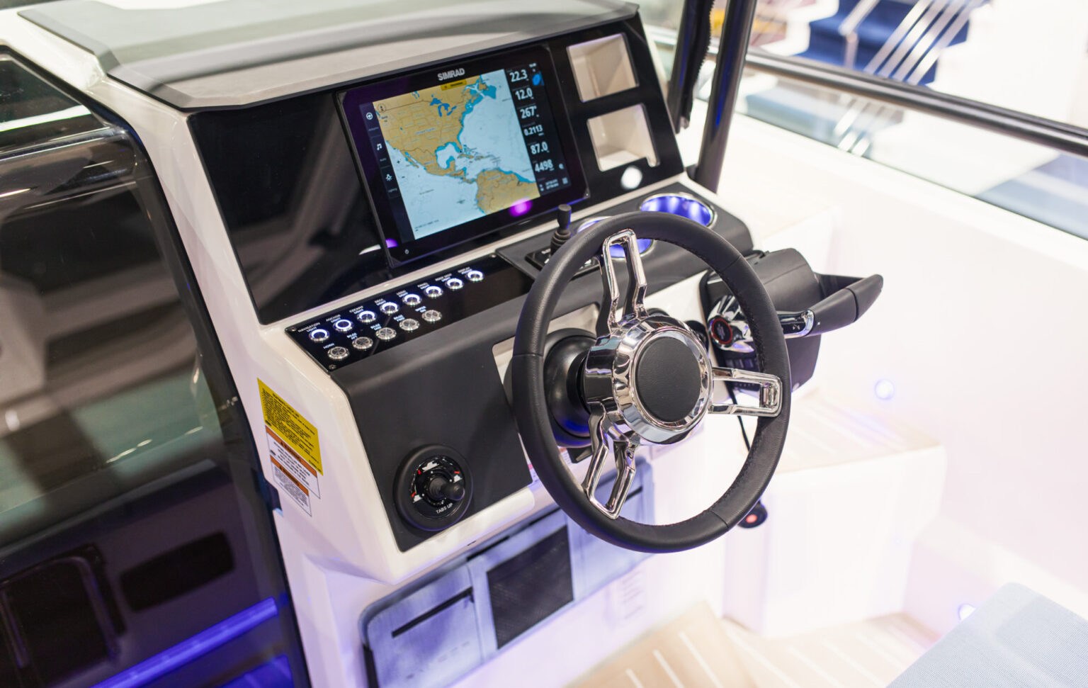 Electronic engine control, Бортовой компьютер (Mercury), спидометр (Simrad), Эхолот (Simrad), GPS (simrad), плоттера (Simrad NSX12), Место второго пилота.