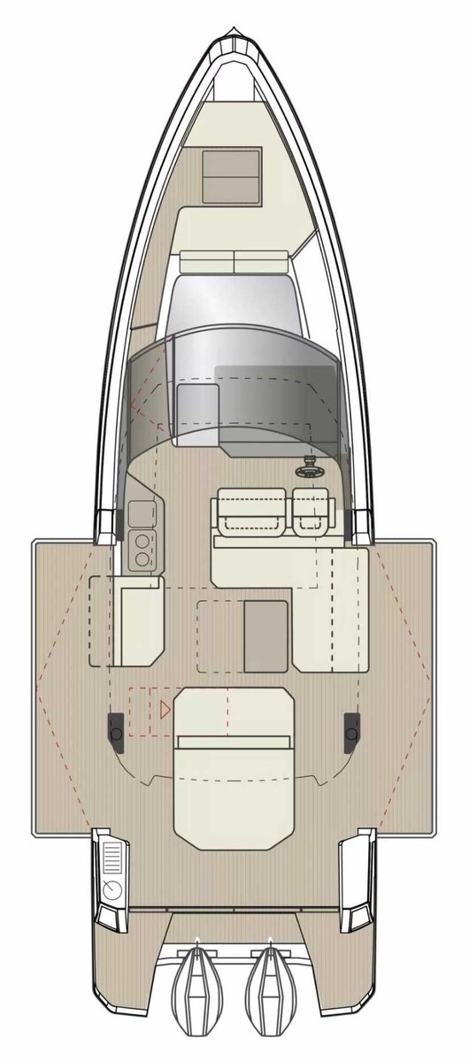 Taud de cockpit, Sellerie complète, Coussins arrieres, Coussin avant, sellerie de cockpit, Rideaux occultants, Supplément bain de soleil, Tauds de fermeture T-Top, Housse de bateau, Taud de console, 4 Taud de siège, 2 Taud de soleil (A poppa e a prua con pali in carbonio).
