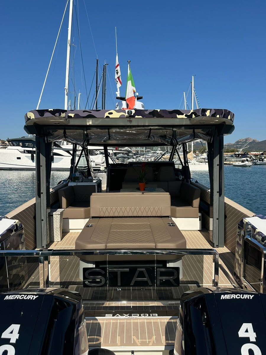 Questo Saxdor 400 GTO praticamente full specs, consegnato al suo primo ed unico armatore nell’estate 2025, incarna al meglio tutte le caratteristiche che hanno reso Saxdor un cantiere d’avanguardia. Le murate abbattibili, lunghe quasi quattro metri, ampliano in modo sorprendente la vivibilità della grande isola living di poppa, facilmente trasformabile in base alle esigenze. Comfort, praticità e stile sono le parole chiave di questa unità, equipaggiata il generator replacement, l'aria condizionata, BBQ esterno, piastra a induzione e doppio frigorifero esterno da 51 litri. I weekend in mare diventano un’esperienza senza compromessi, completata dai tendalini di poppa e di prua e dalla potenza dei due Mercury da 400 hp, capaci di spingere questa regina del mare fino a 45 nodi. Gelcoat in perfette condizioni, protetto dal wrap camouflage.
