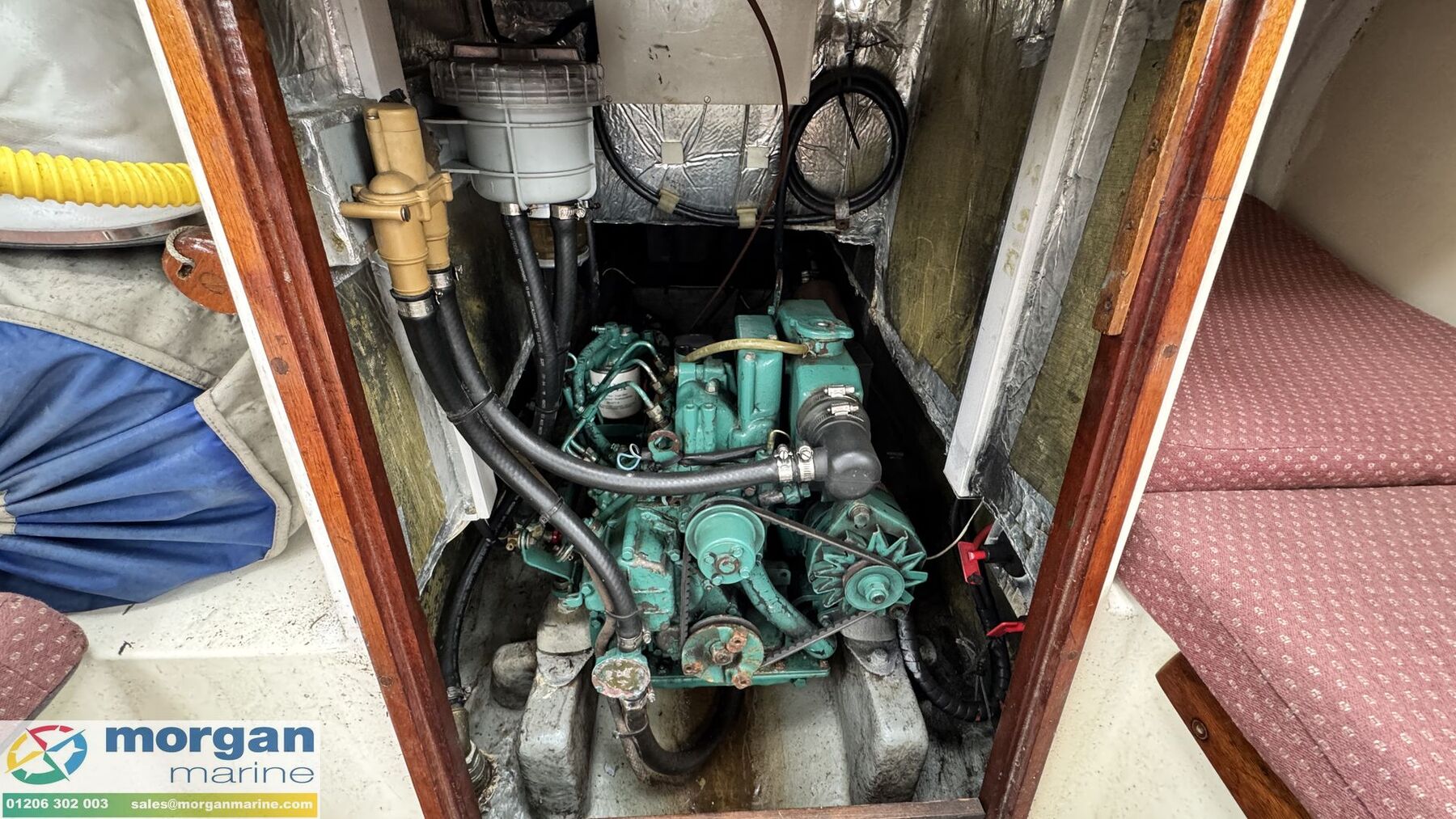 Machinery: Volvo Penta MD2020B 3-cylinder 19 hp inboard diesel engine. Installed in 1995. Engine serviced in 2025. Anodes changed in 2025. Fuel capacity 45 Litres. Water capacity - 65 Litres. Johnson 3hp 2003 auxiliary outboard engine - Serial number - 09493823.