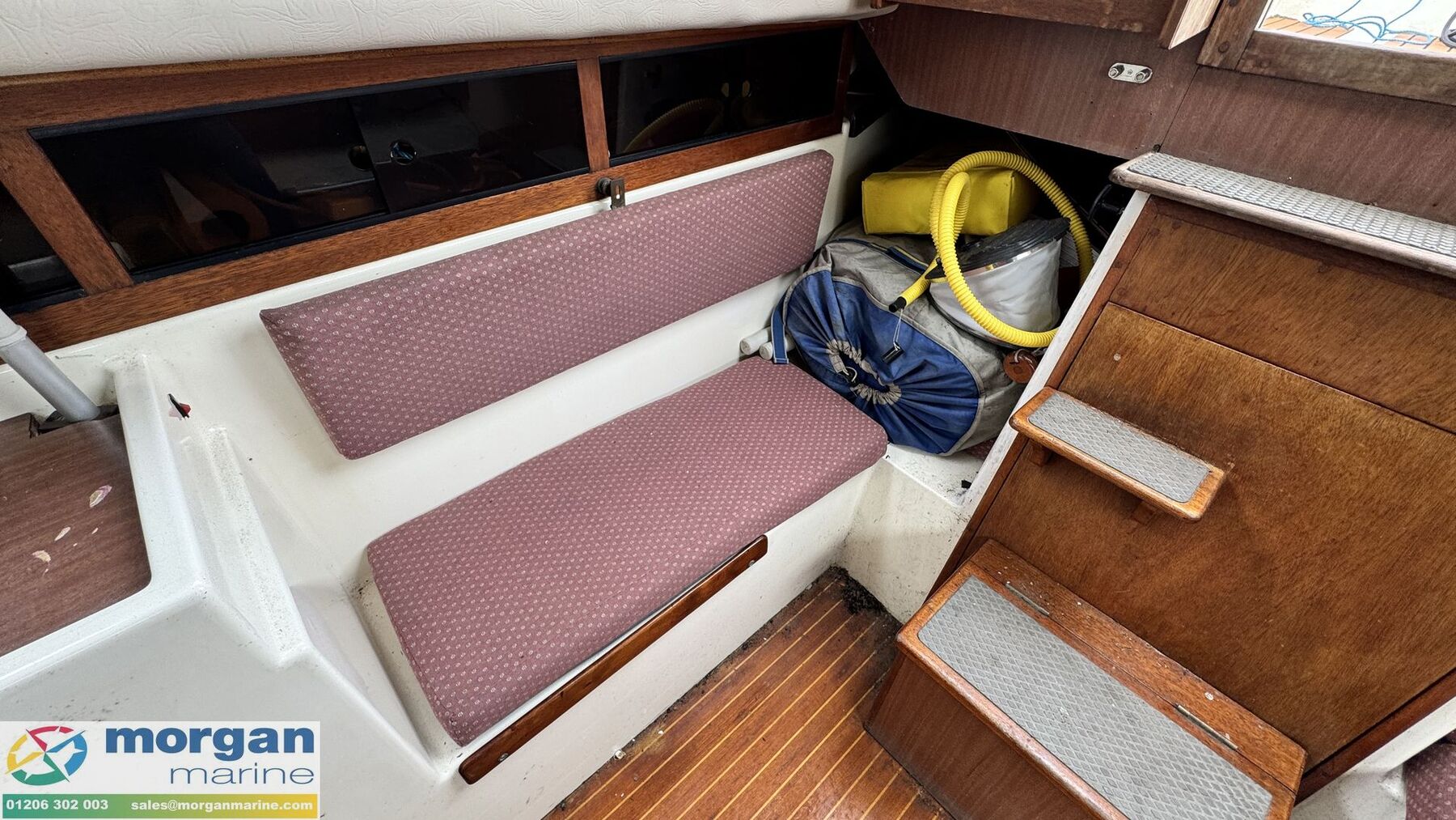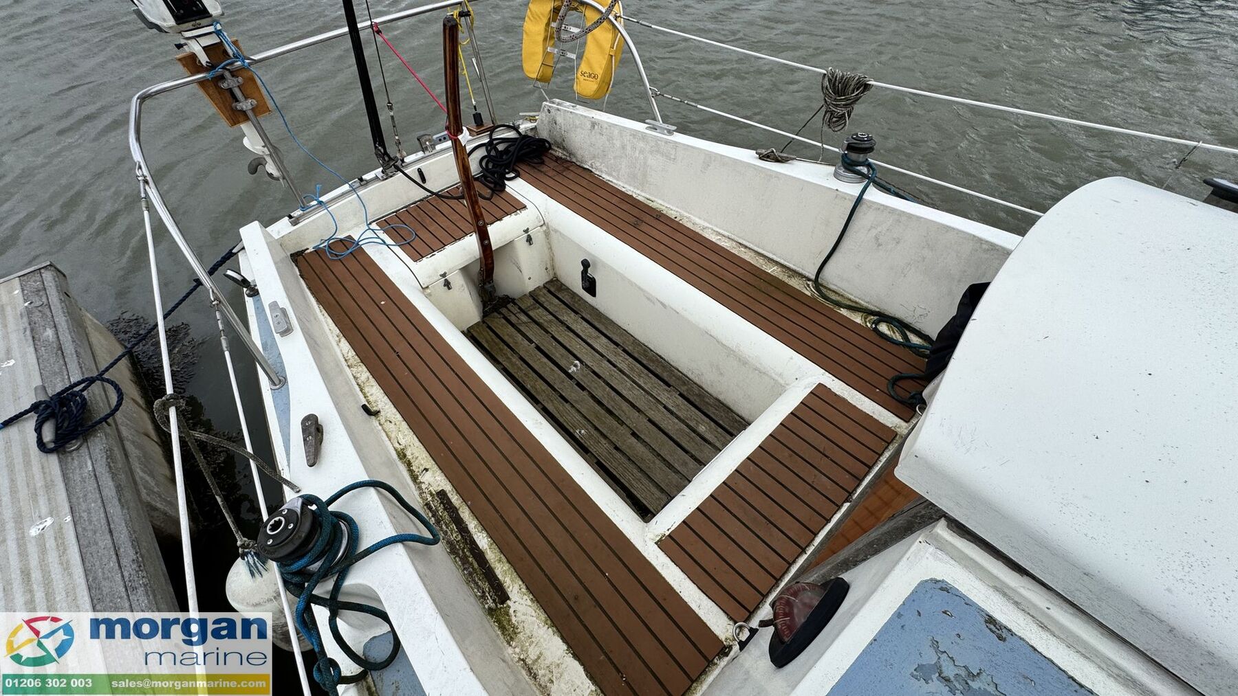 Cockpit: Large deep, safe cockpit with port and starboard bench style seating. Tiller Steering. Windows resealed in 2014.