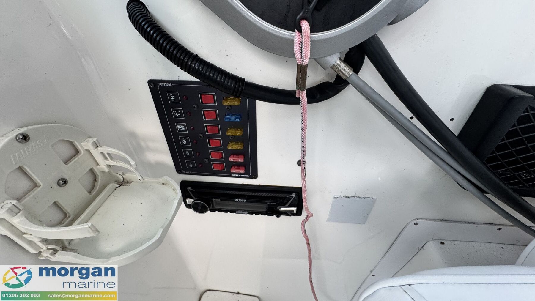 x2 Digital engine gauges. Fuel gauge. Solar panels with battery charger. Sony MEX-N5100BT sound system. Isolator switch. Navigation lights. Anchor light. Compass. Electric and manual bilge pump. LED exterior work lighting.
