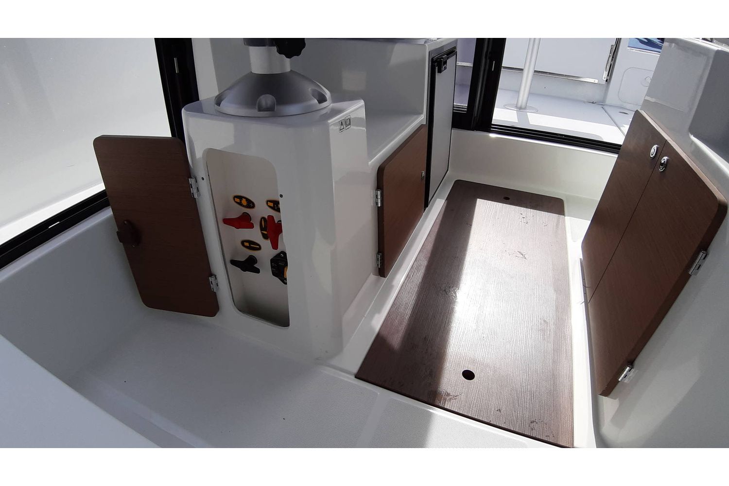 Machinery: Yamaha F200 XSA – Steer By Wire outboard engine. Hydraulic steering. Bow thruster. Pressurised fresh water system, water tank, cockpit shower, tap in galley, tap in toilet compartment. Volcano engine lock. Manual and electric bilge pumps. Optional upgrade to Yamaha F250 NSB X – Steer By Wire for £7,000. Fuel capacity: 280L (with outside fill). Water capacity: 100L.