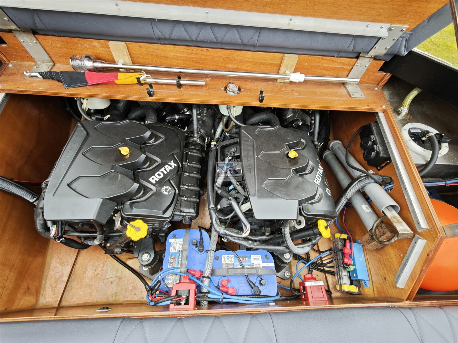 Автоматический дифферент, 2 аккумуляторы (2 x 60 AH), Кабель берегового питания, Тиковая палуба, Прямая розетка от причала.