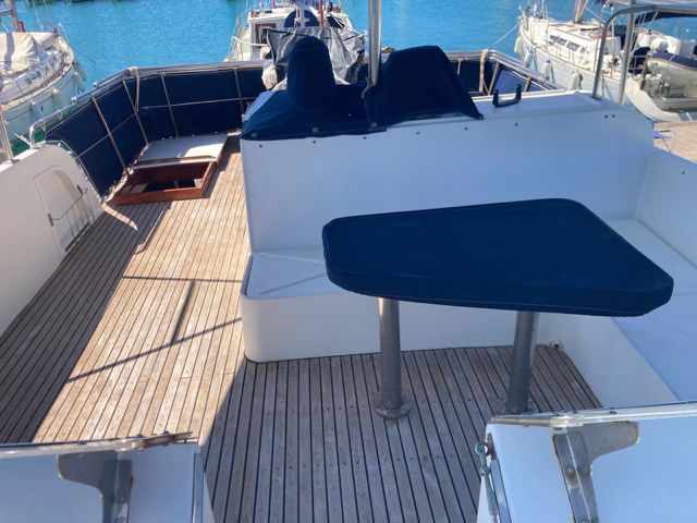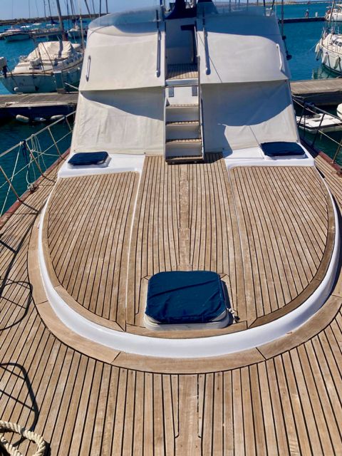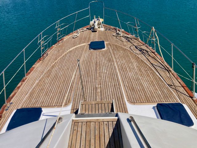Electric windlass – Hydraulic gangway – Teak deck – Sun awning – Bimini – Water heater – Bow and stern thrusters