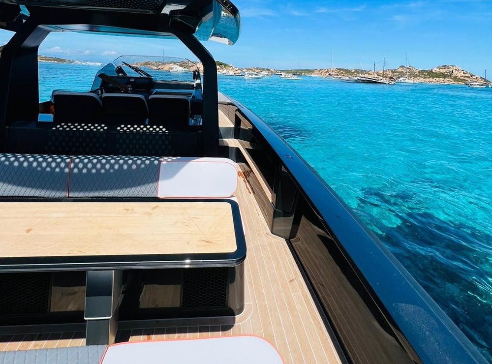 Fume/Gas Detector, 2 Engine Alarm, Bilge Alarm, Electric Engine Compartment Opening, Water pressure pump, Auto-Trim, Teak Side Decks, Shore power cable, Special Colour, Deck Shower, Headlights fixed on the stem, Anchor mount, Electric Flaps, Hard top, Fire Extinguishing System, 2 Flaps Indicators, Anchor Chain Washdown, Washbasin in the cockpit, Courtesy Lights, Underwater lights, Platform, Manual Bilge Pump, Teak deck, Entry door, Teak Cockpit, Shorepower connector, Rollbar, Electric Windlass, swimming ladder, cockpit table, Horn, T-Top.