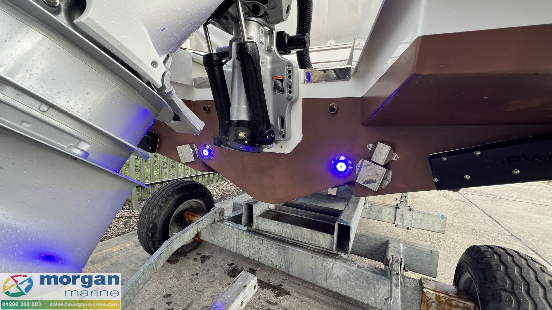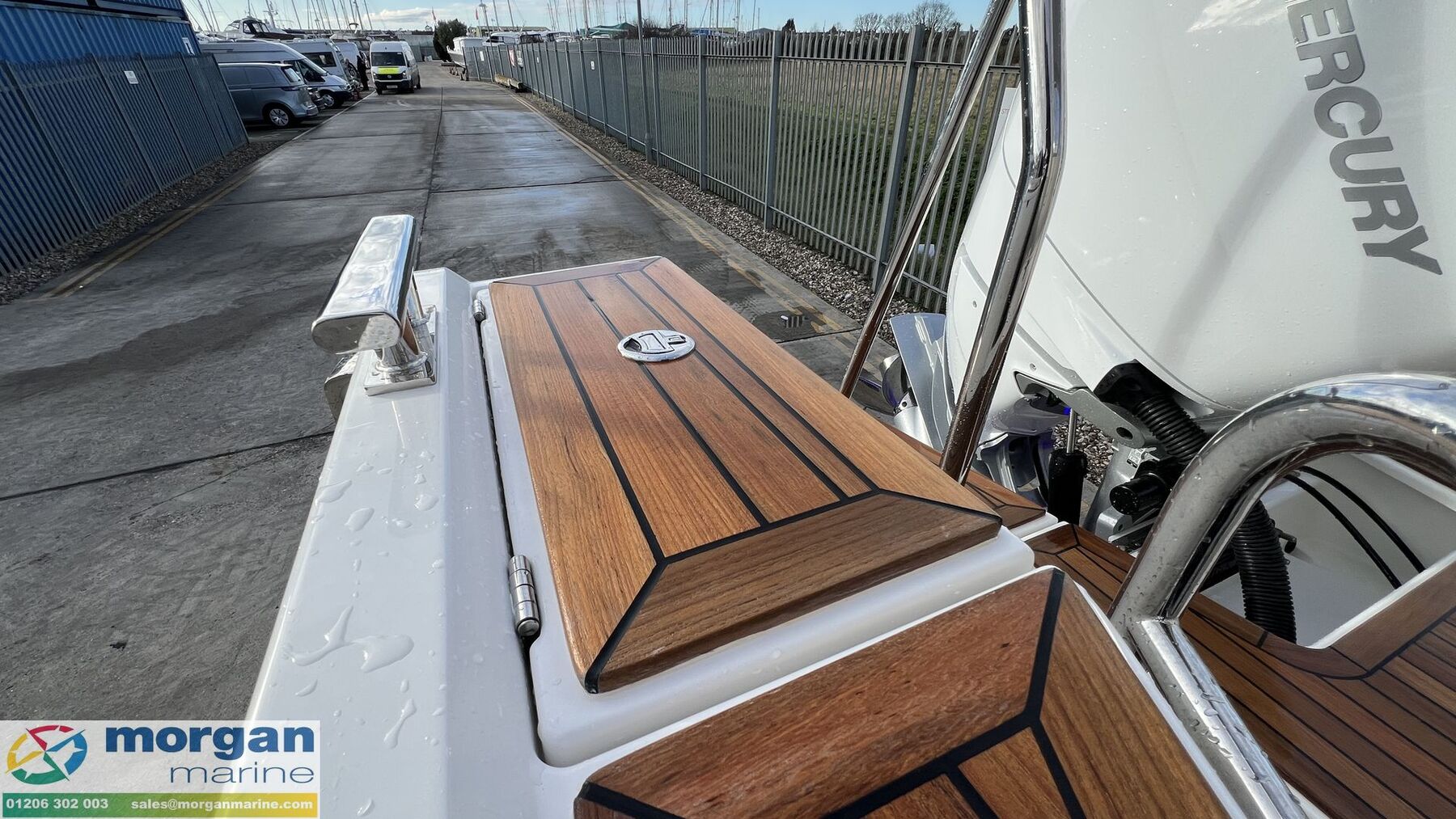 Machinery: Mercury Verado V10-350 XL: propeller, VesselView 403, Active Trim - Cold Fusion White + Bow thruster. Zipwake dynamic trim control system 450mm. Webasto AT3900 heater / defroster system + 11.5L diesel tank. Fuel capacity: 320L. Fresh water capacity: 56L. CE Category C8.