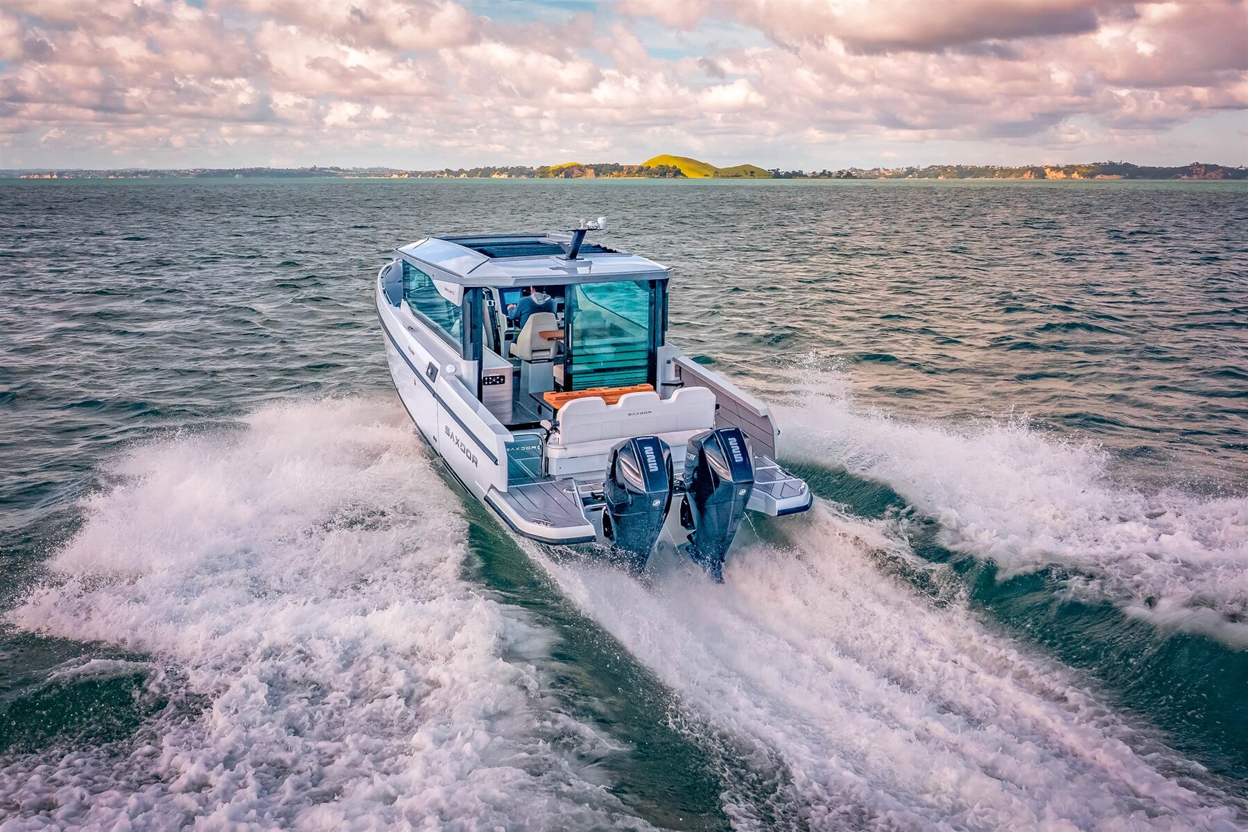 Die Saxdor 320 GTC verfügt über das gleiche raffinierte, effiziente und leistungsorientierte Rumpfdesign wie das Modell 320 GTO. Ein niedriger Schwerpunkt, ein geringes Gewicht, ein scharfer Bug und ein doppelstufiger, vakuuminfundierter Rumpf schaffen ein einzigartiges Fahrerlebnis bei allen Arten von Meeren und Wetterbedingungen auf der ganzen Welt. Der Saxdor 320 GTC ist mit drei Mercury-Antriebsoptionen erhältlich, die von 300 PS bis 600 PS reichen. Sie können zwischen der einmotorigen Option oder der zweimotorigen Option mit 2 x 225 PS oder 2 x 300 PS wählen, dem wahren "Grand Turismo des Meeres". Die Saxdor 320 GTC definiert das Bewegungserlebnis an Bord neu. Dank des einzigartigen Konzepts eines geräumigen Steuerhauses mit voller Breite und eines einfachen Zugangs zum begehbaren Bug war es noch nie so einfach, sich mit dem Boot fortzubewegen. Saxdor glaubt an den Luxus ungenutzten Raums. Kontaktieren Sie uns für jedes Detail.