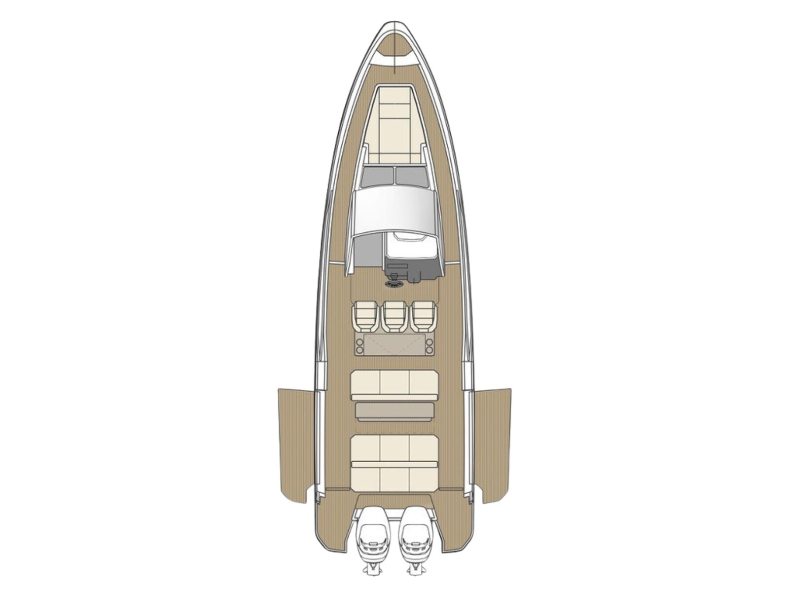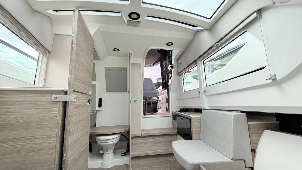 Comando motori elettronico, Computer di bordo, Display (SIMRAD NSS12 Evo3s), Ecoscandaglio (SIMRAD Echosounder P79), GPS (Simrad), Luci di navigazione (LED), Plotter (Simrad), Quadro comandi, 2 Sedile Copilota.