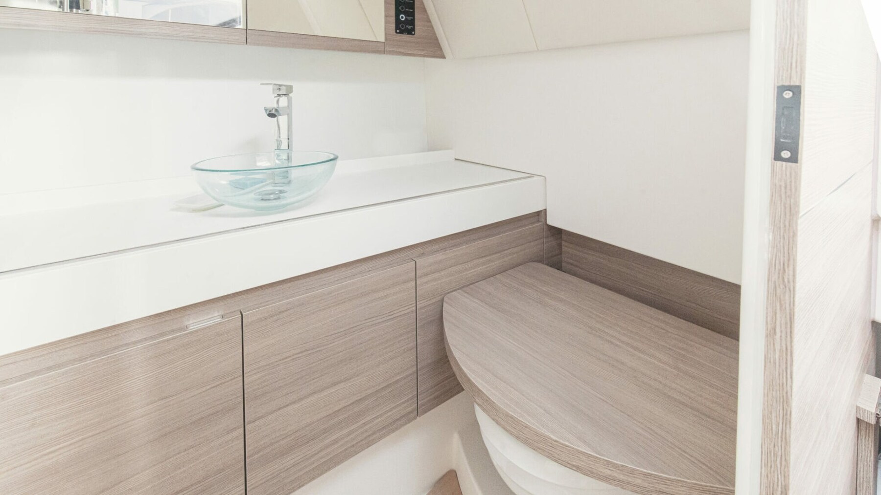 Warmwasserbereiter (40 lt), Faekalientank, 12V Steckdose, 220V Steckdose, Schwarzwassertank, elektrische Toilette.