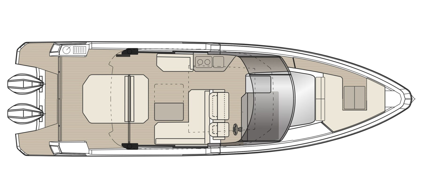 La Saxdor 400 GTC, è progettata per motorizzazioni fuoribordo doppie e sfrutta un’architettura navale esclusiva, garantendo un’esperienza di navigazione memorabile. Il ponte principale presenta un design innovativo con wheelhouse a tutta larghezza, ottimizzando gli spazi interni. Rispetto alla GTO, la GTC aggiunge un tocco di lusso grazie alle ampie superfici vetrate isolate, che creano un ambiente luminoso e accogliente, protetto dagli agenti esterni. Il layout consente un collegamento diretto alle terrazze laterali, per un’esperienza di relax simile a un’isola privata. Sottocoperta, due scale conducono alle cabine doppie – a prua e a centro barca – che condividono un bagno; è disponibile anche un terzo letto opzionale per bambini. Ogni dettaglio è progettato con eleganza e funzionalità. Contattaci per maggiori informazioni.