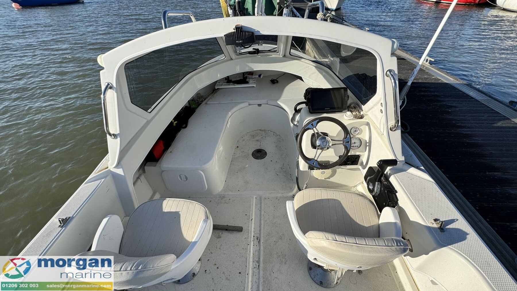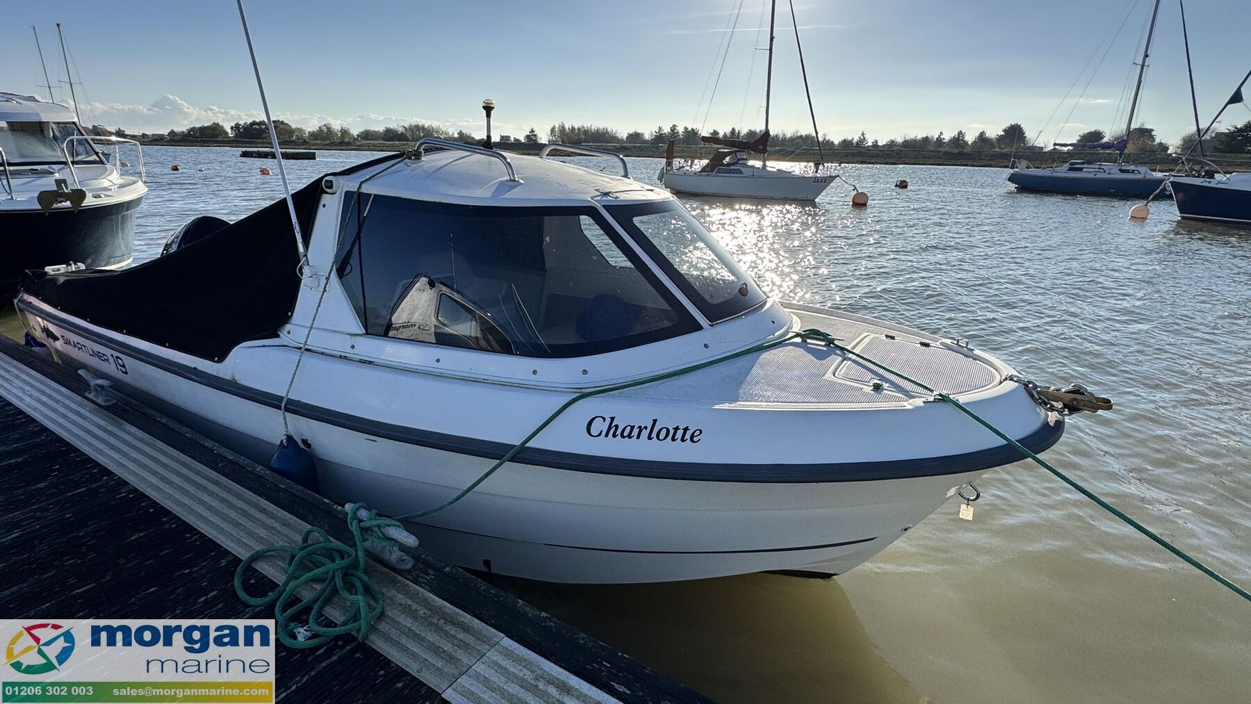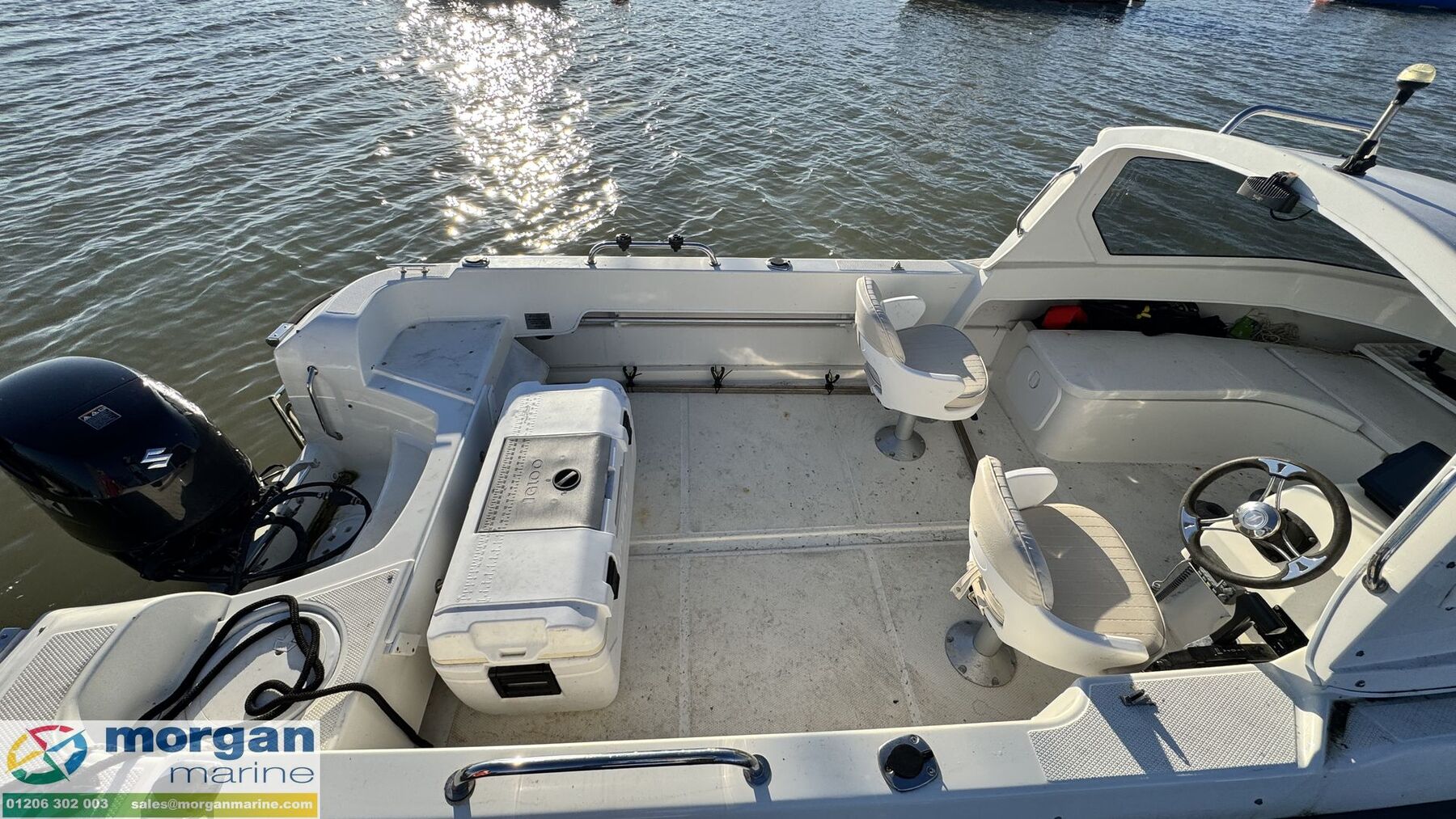 2022 Smartliner Cuddy 19. Charlotte is a brilliant option for both anglers and leisure boaters, she offers an economical and versatile ride that’s easy to handle and delivers impressive on-water performance. Powered by a Suzuki DF80 outboard with electric start and power trim and tilt, with approx 100 engine hours, this popular model is ready for adventure. Charlotte features a spacious cockpit with ample room for fishing or relaxing, complete with rod holders, an enclosed cuddy with bench seating, and adjustable swivelling pilot and co-pilot bolster seats. Onboard navigation and communications are fully equipped with a Garmin chart plotter and Cobra VHF radio with GPS, and she comes presented with a protective Tonneau cover and a host of smart onboard extras. Don’t miss the chance to view this sought-after Smartliner. Contact Morgan Marine today to arrange an early viewing!