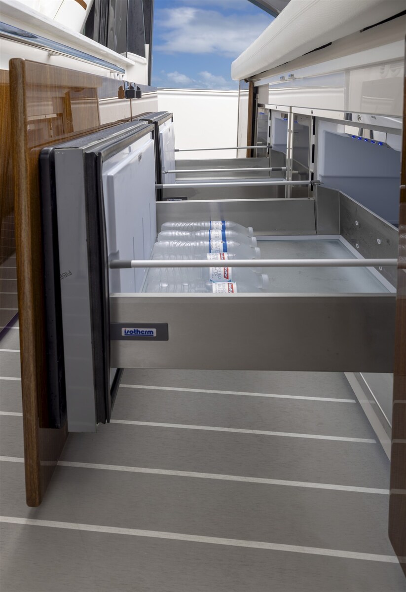 Diseñado con absoluta precisión, durabilidad duradera y comodidad pensada, el 46 LS está diseñado para llevarte no solo más lejos, sino también plenamente en esos momentos que recordarás incluso después de volver a estar en tierra. Tres módulos de cabina trasera distintos permiten al propietario personalizar la experiencia a bordo, ya sea para entretenimiento, aventura o pura relajación, realzada por una terraza en el lado de babor que abre el barco al mar. Las puertas correderas de cristal cierran la cabina ofreciendo protección contra los elementos, mientras que bajo cubierta hay un ambiente refinado y acogedor, con una cabina del propietario en la proa, una cabina de huéspedes a mitad del barco y un baño totalmente equipado. La cocina cuidadosamente diseñada en la cabina central, junto con los amplios espacios de preparación y la despensa bajo cubierta, crean un entorno funcional y libre de estrés para la hospitalidad a bordo. Contáctanos para cada detalle.