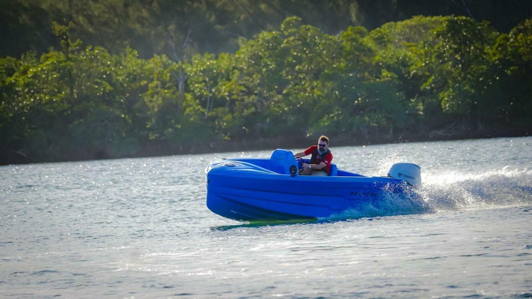 The Phantom is an incredibly recyclable boat manufactured from high-grade plastic (Polyethylene) – It's thick rotomolded plastic hull offers a very high impact-strength and a lifetime warranty. The lightweight hull is purposefully designed for electric propulsion and easy hauling. Its built on a self bailing platform that allows it bail out water automatically.